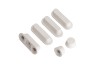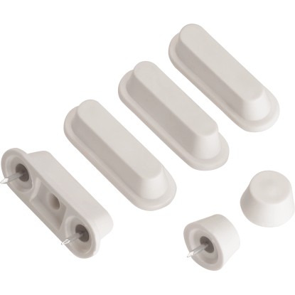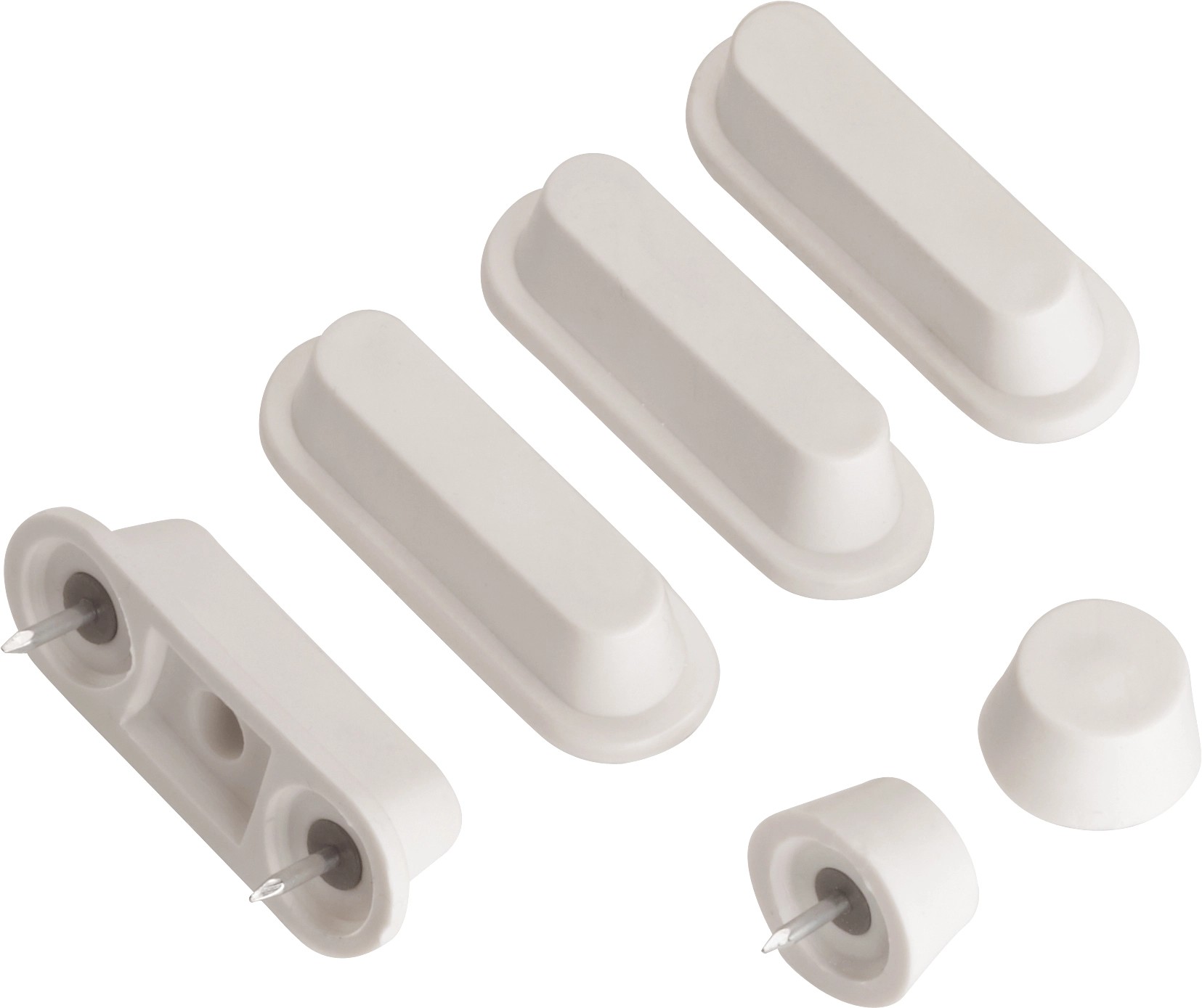 Zestaw 2 małych i 4 dużych odbojników wykonanych z tworzywa sztucznego w kolorze białym. Do deski mocowane są za pomocą metalowego bolca, zapewniając jej ciche użytkowanie.