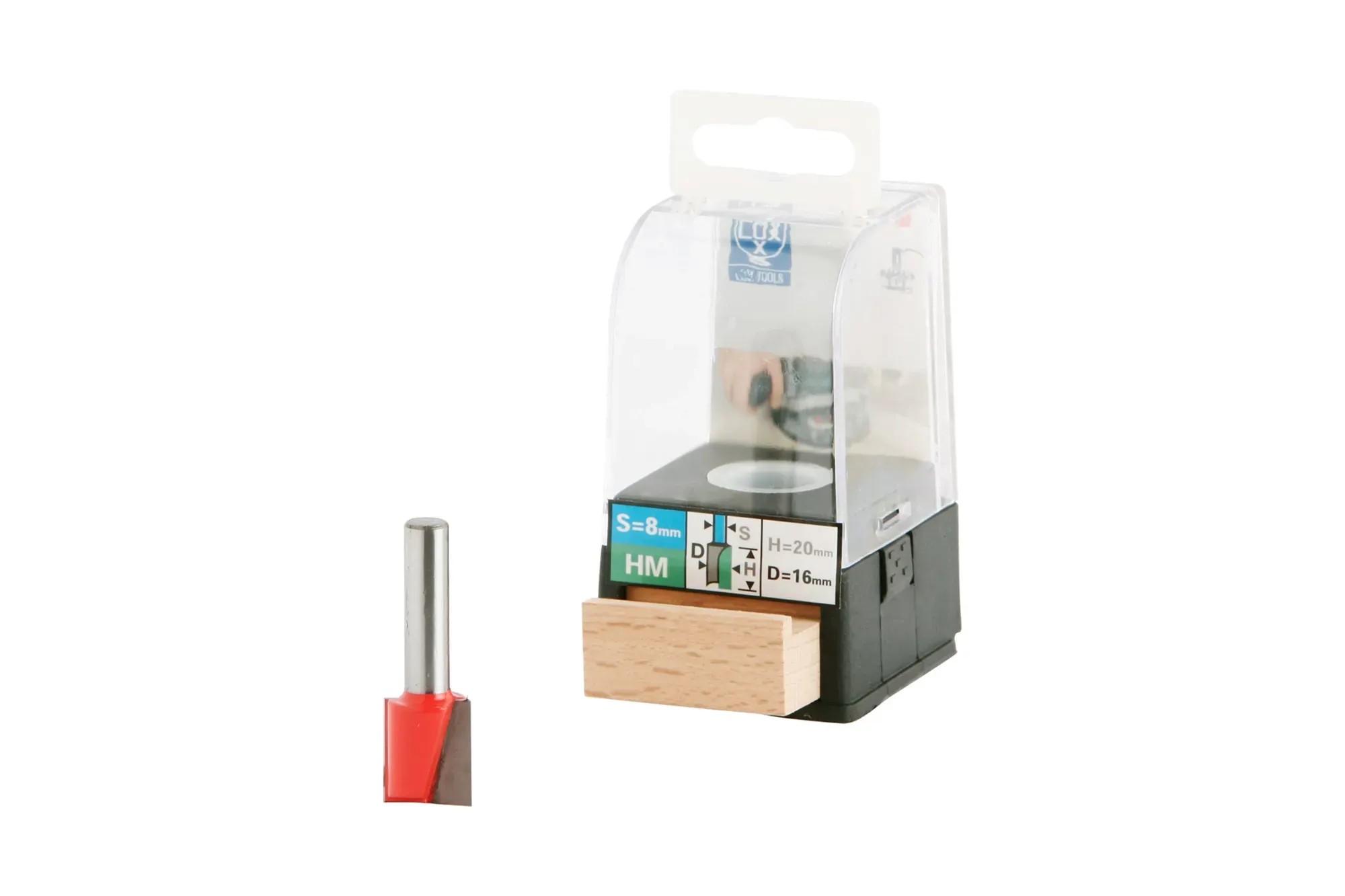 Krawędź tnąca o długości 20 mm ma średnicę 16 mm. Trzpień: 8 mm.