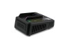 Umożliwia naładowanie baterii w 80 % w zaledwie 48 minut. Gdy zestaw akumulatorów jest ładowany, kontrolka na ładowarce miga. Po pełnym naładowaniu akumulatora kontrolka na ładowarce świeci światłem ciągłym. Dokładny stan roboczy zestawu akumulatorów można odczytać na wyświetlaczu baterii. Bateria nie wchodzi w zakres zestawu. Naładowany zestaw akumulatorów może pozostać w ładowarce do momentu użycia. Nie ma niebezpieczeństwa przeładowania. Aby uniknąć niepotrzebnego zużycia energii, należy odłączyć ładowarkę, gdy zestaw akumulatorów będzie całkowicie naładowany.