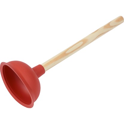 Przepychacz z drewnianym trzonkiem i gumowym kołnierzem, przeznaczony do zastosowań sanitarnych. Służy do udrożnienia zatkanych wylotów rur.