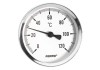 Termometr przemysłowy przeznaczony do pomiaru temperatury w urządzeniach stosowanych w różnych dziedzinach przemysłu. Termometr znajduje się w oprawie ze stali ocynkowanej z axialnym tzn. tylnym gwintem R1/2" i szkłem ochronnym odpornym na zarysowanie. Tarcza ma średnicy 63mm i wykonana jest z aluminium lakierowanego proszkowo. Mechanizm składa się z bimetalicznej spirali. Termometr można ustawić do każdej żądanej pozycji odczytu i blokowany jest przez mosiężną nakrętkę ze śrubką. Oznaczenia skali malowane są na kolor czarny dla łatwiejszego odczytu. Podziałka skali jest co 1 stopień z podpisanymi kolejnymi dwudziestkami oraz zaznaczanymi grubszą linią piątkami i dziesiątkami. Zakres pomiarowy od 0°C do 120°C. Termometr wykonany jest zgodnie z wymogami normy PN-85/M-53820.
