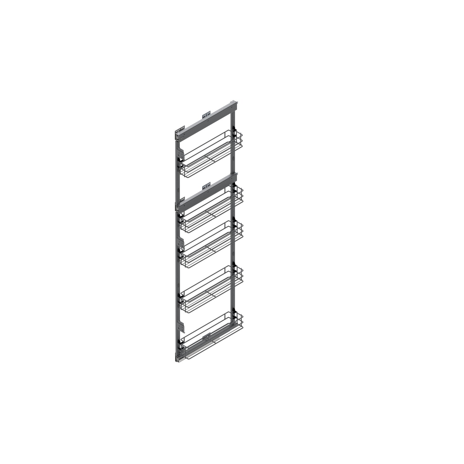 Prowadnice z miękkim dosiągiem zapewniają płynne i ciche wsuwanie oraz wysuwanie koszy, co sprawia, że korzystanie z organizera jest wygodne i komfortowe.
