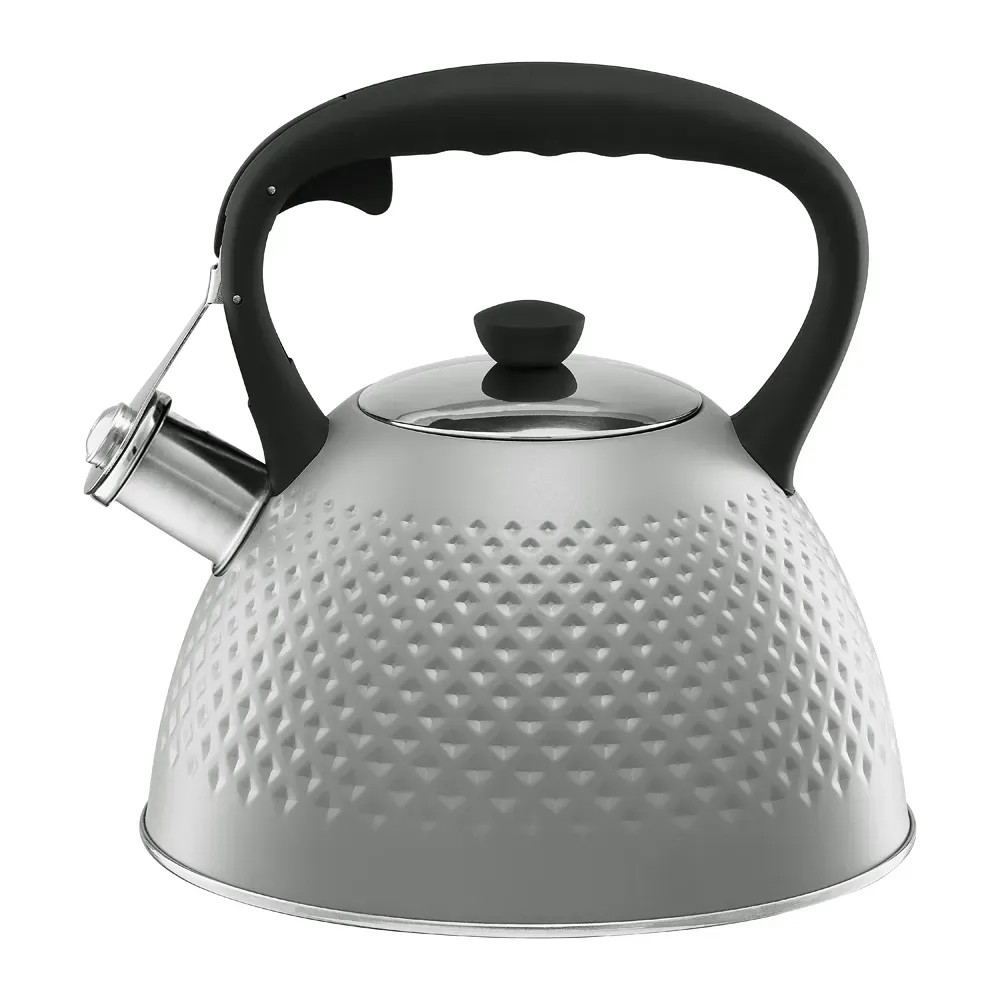 Czajnik z serii Diamond marki Ambition. Posiada dużą pojemność 2,3 litry użytkowa, 3 litry całkowita. Korpus o niebanalnym wyglądzie z wyżłobionym wzorem w kształcie diamentów. Duża, pełna rączka pokryta materiałem miłym w dotyku, które imituje naturalne drewno. W rączce ukryty jest przycisk do łatwego odchylania gwizdka. Ciekawym pomysłem jest połączenie matowego wykończenia korpusu czajnika z pokrywką wykonaną w połysku.