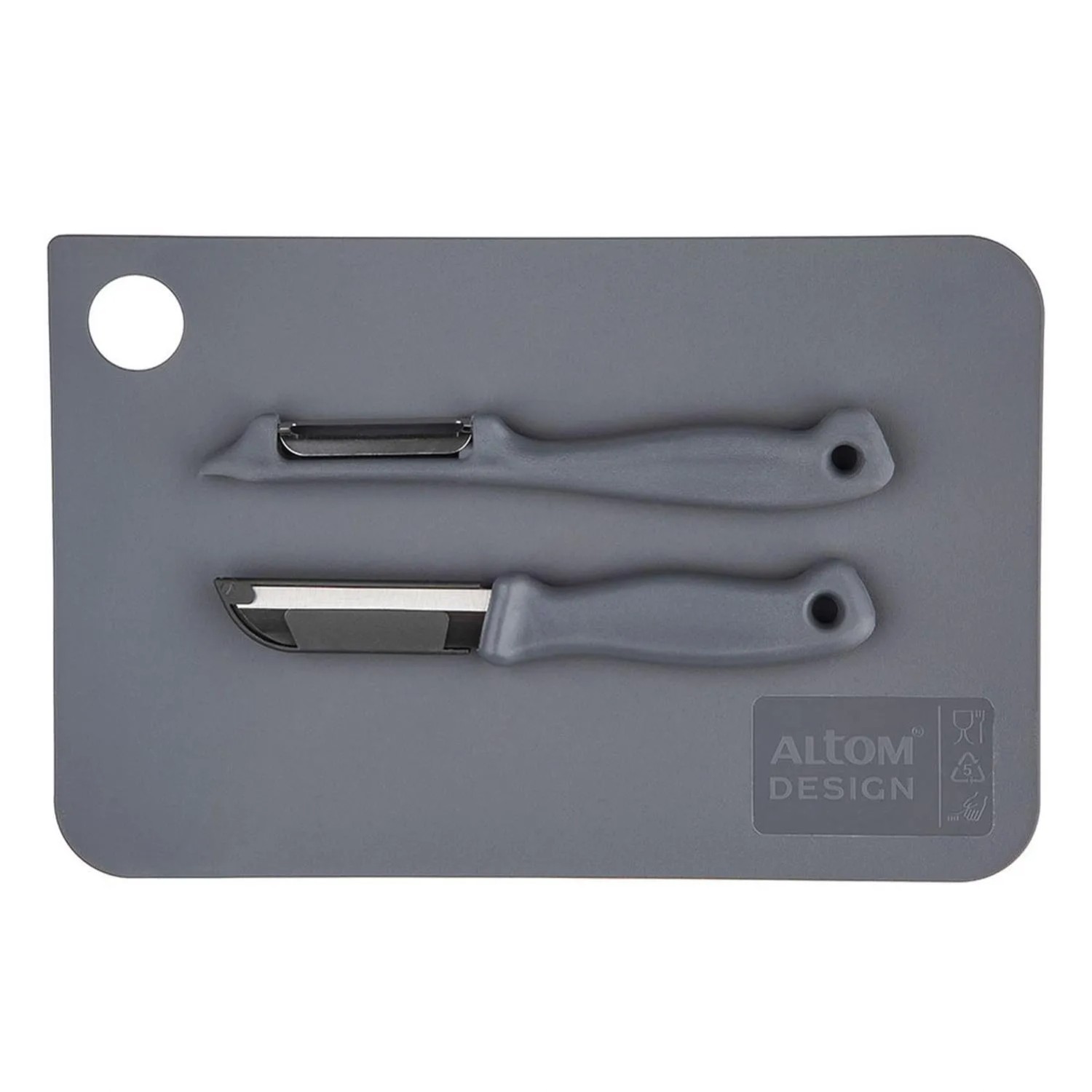 Zestaw - deska, nóż i obieraczka, szary