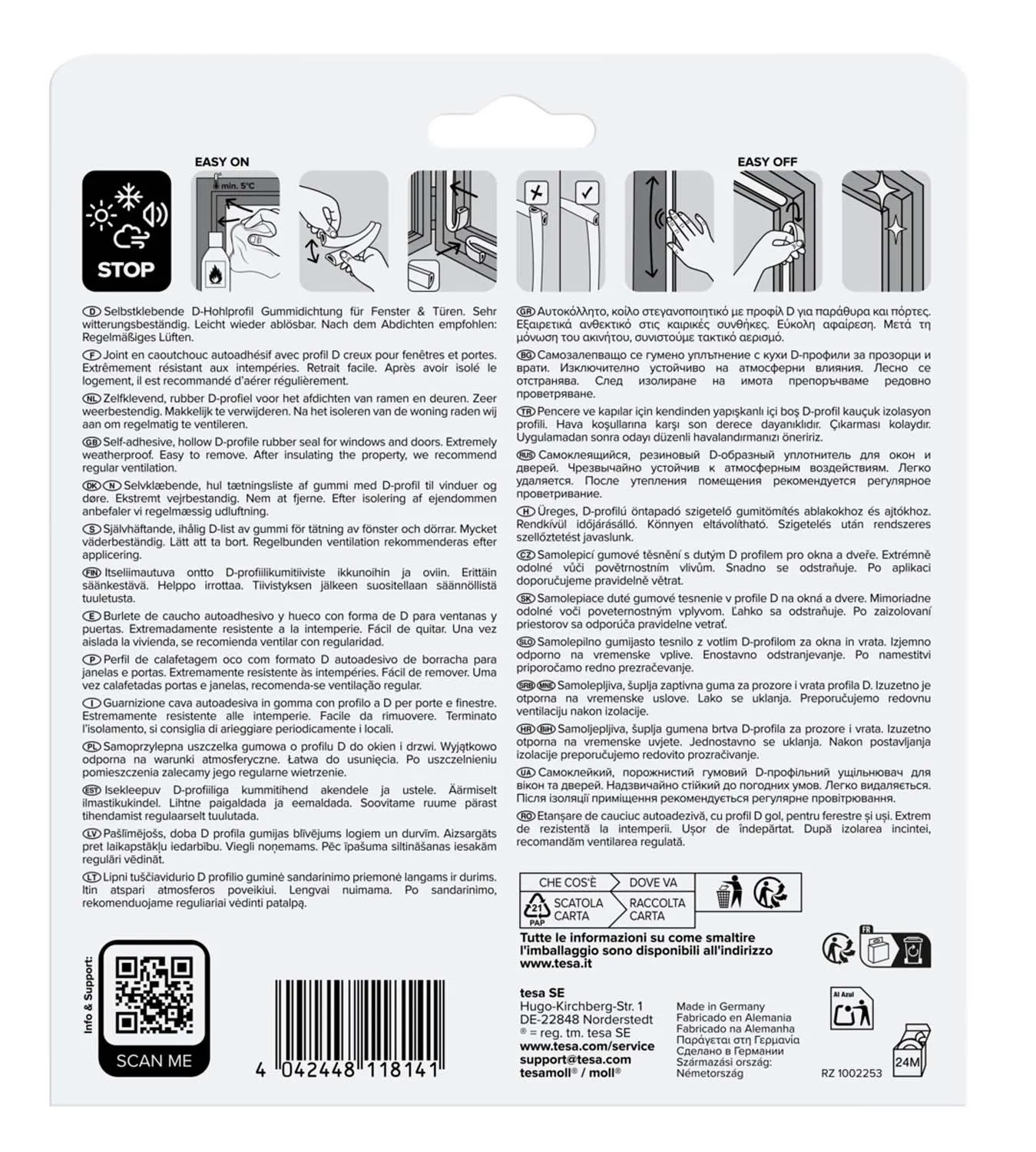 Samoprzylepna uszczelka gumowa o profilu D do okien i drzwi. Wyjątkowo odporna na warunki atmosferyczne. Łatwa do usunięcia. Po uszczelnieniu pomieszczenia zalecane jest jego regularne wietrzenie.