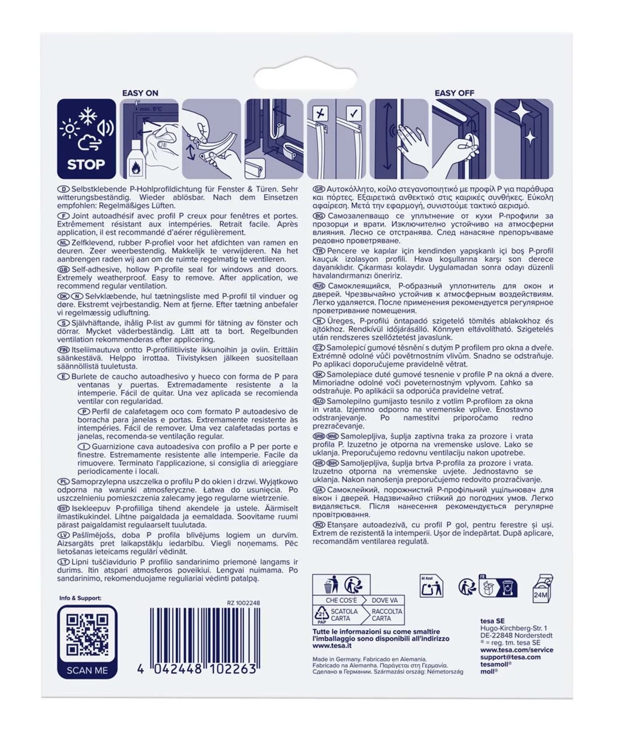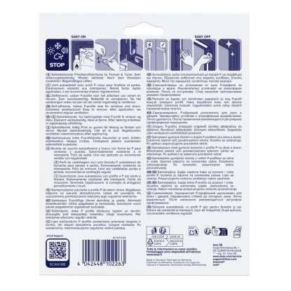Samoprzylepna uszczelka o profilu P do okien i drzwi. Wyjątkowo odporna na warunki atmosferyczne. Łatwa do usunięcia. Po uszczelnieniu pomieszczenia zalecane jest jego regularne wietrzenie.