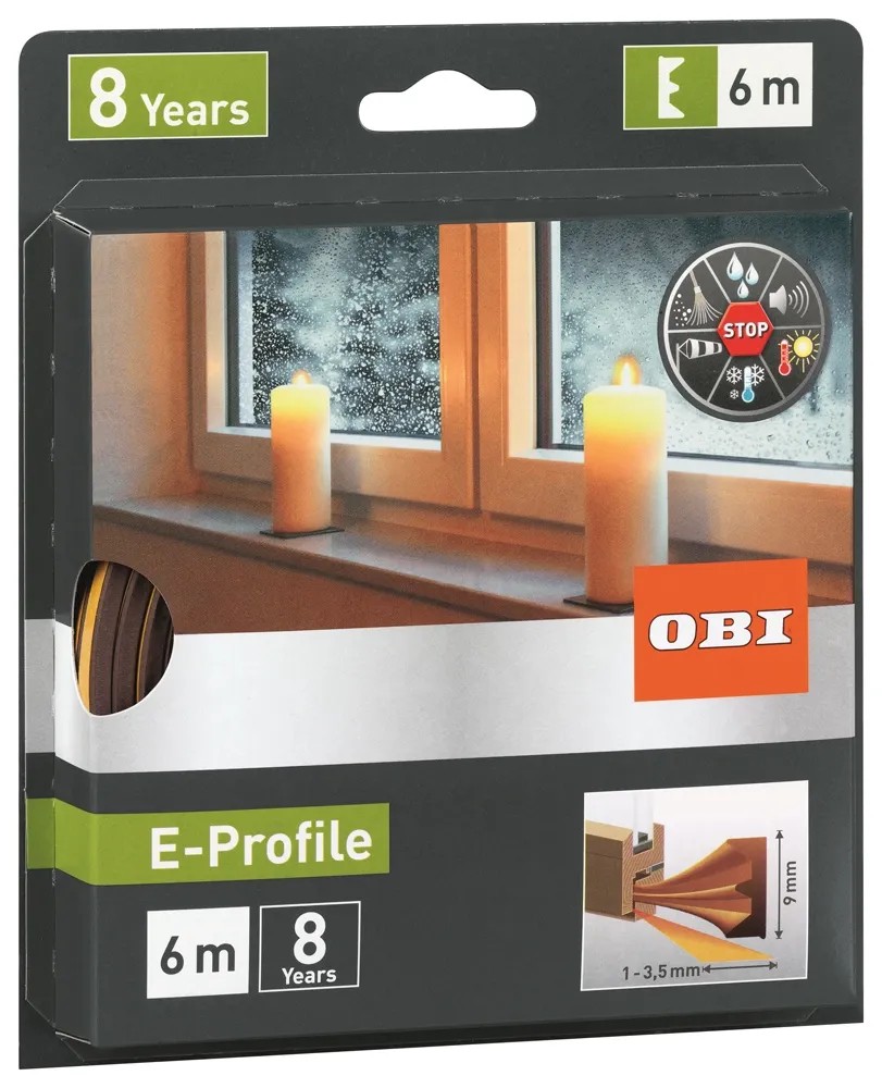 Uszczelka Profil E w kolorze brązowym o długości 6 m i grubości 9 mm, marki Obi.