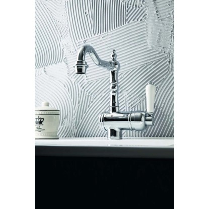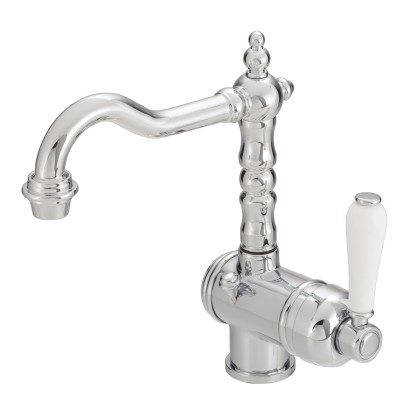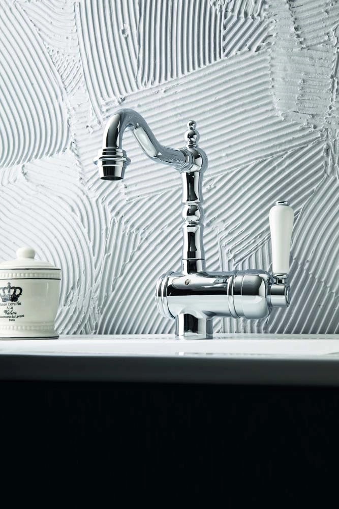 Bateria umywalkowa w retro stylu Baliv WT-5320 to podstawa każdej funkcjonalnej łazienki. Bateria wykonana jest z cynku i dostępna jest w kolorze chrom + biel. Tym samym, stawiając na uniwersalny wygląd bateria sprawdzi się nie tylko w nowoczesnym, industrialnym wnętrzu. Produkt jest trwały i stabilny, ponadto spełnia standardy higieny (łatwo się go czyści). Długoletnią niezawodność gwarantuje ceramiczna głowica. Bateria dostępna jest w wersji jednouchwytowej.