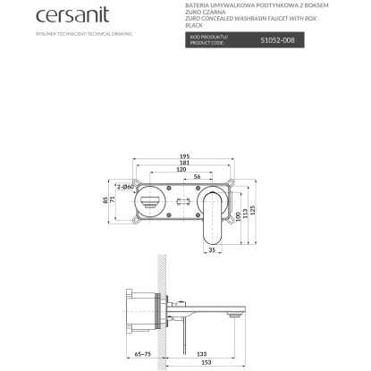 Cersanit Bateria umywalkowa podtynkowa Zuro czarna