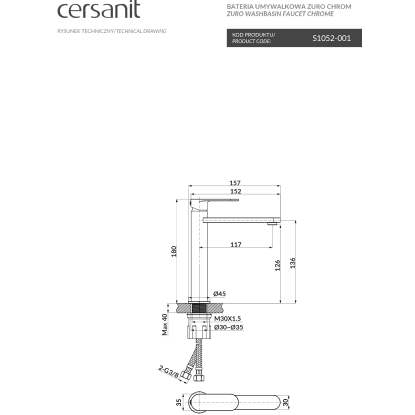Precyzyjną regulację temperatury wody gwarantuje głowica ceramiczna 25 mm. Bateria wyposażona jest w innowacyjny perlator Cersanit Water Save, który sprawia, że strumień jest zawsze miękki i napowietrzony, jednocześnie ograniczając wypływ wody do zaledwie 6 l/min. To rozwiązanie pozwala na znaczną oszczędność wody i obniżenie rachunków.