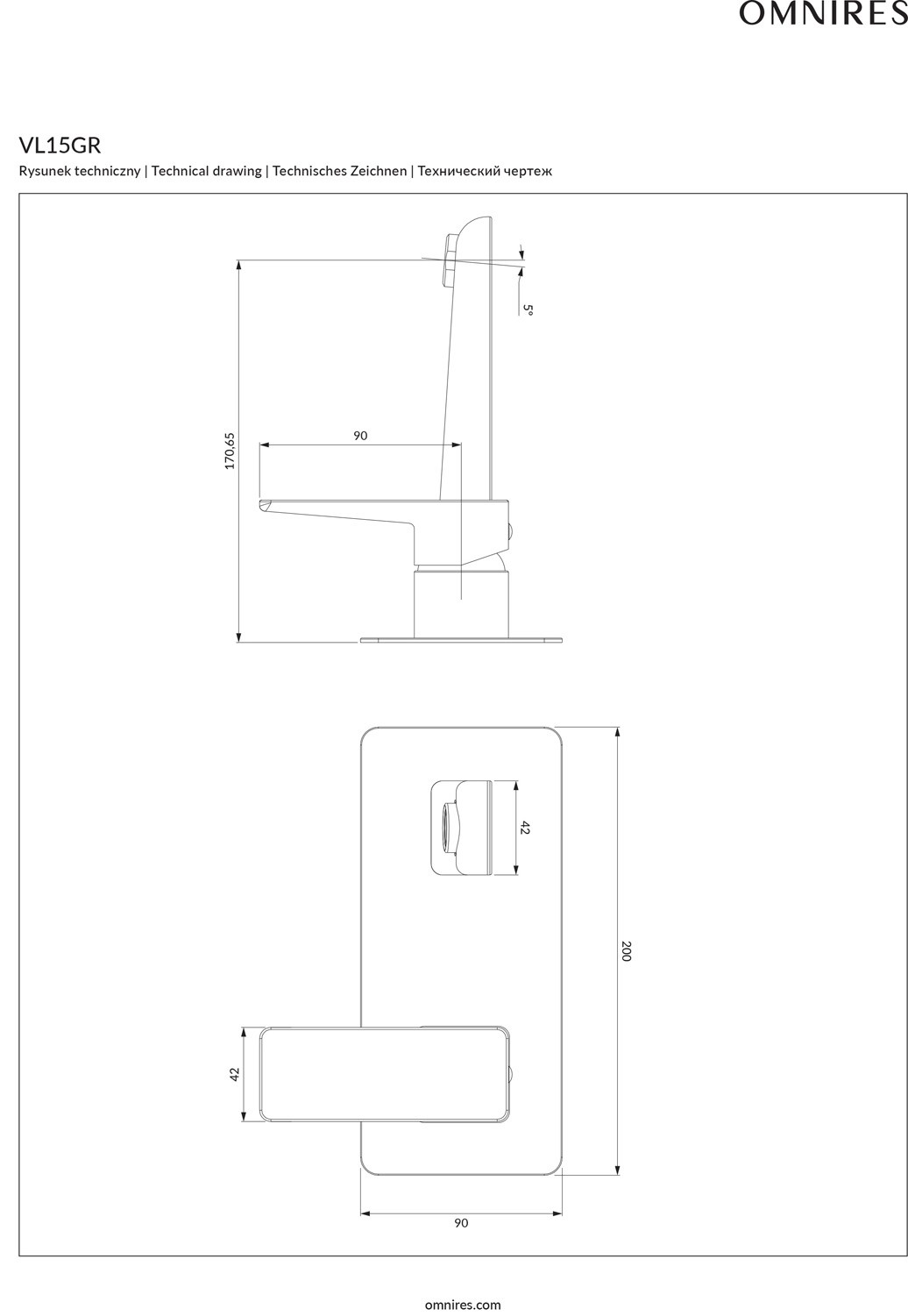 Omnires Bateria umywalkowa podtynkowa Vellon grafit