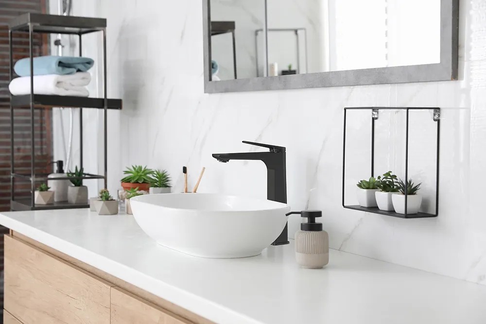Stojąca bateria umywalkowa o interesującym, nowoczesnym wyglądzie, wykończona w eleganckim, czarnym kolorze będzie stanowić praktyczną ozdobę każdej łazienki.