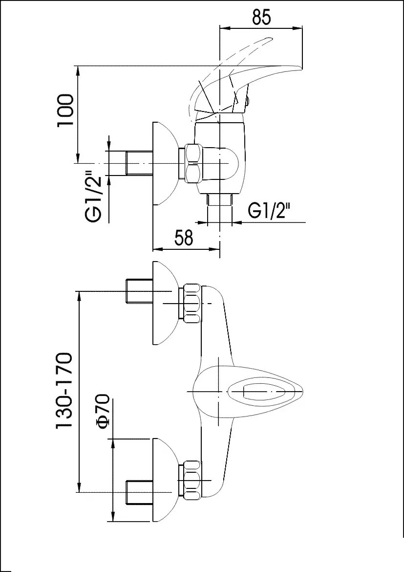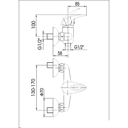 Jest to wysokiej jakości ścienna bateria prysznicowa z głowicą ceramiczną o średnicy 35 mm.