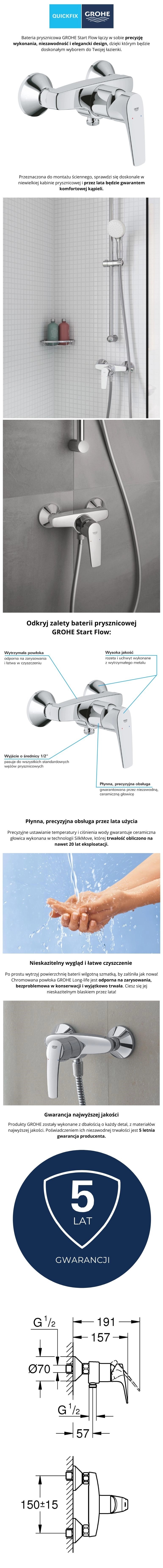 Dzięki chromowanej powłoce Grohe StarLight bateria charakteryzuje się estetycznym wyglądem, przez co stanowi stylowy i elegancki element wyposażenia każdej łazienki.