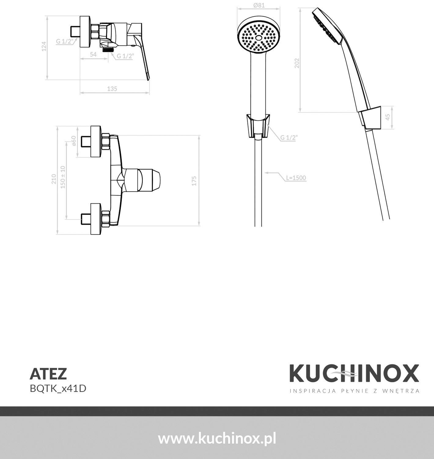 Kuchinox Bateria natryskowa ścienna z zestaw natryskowy Atez