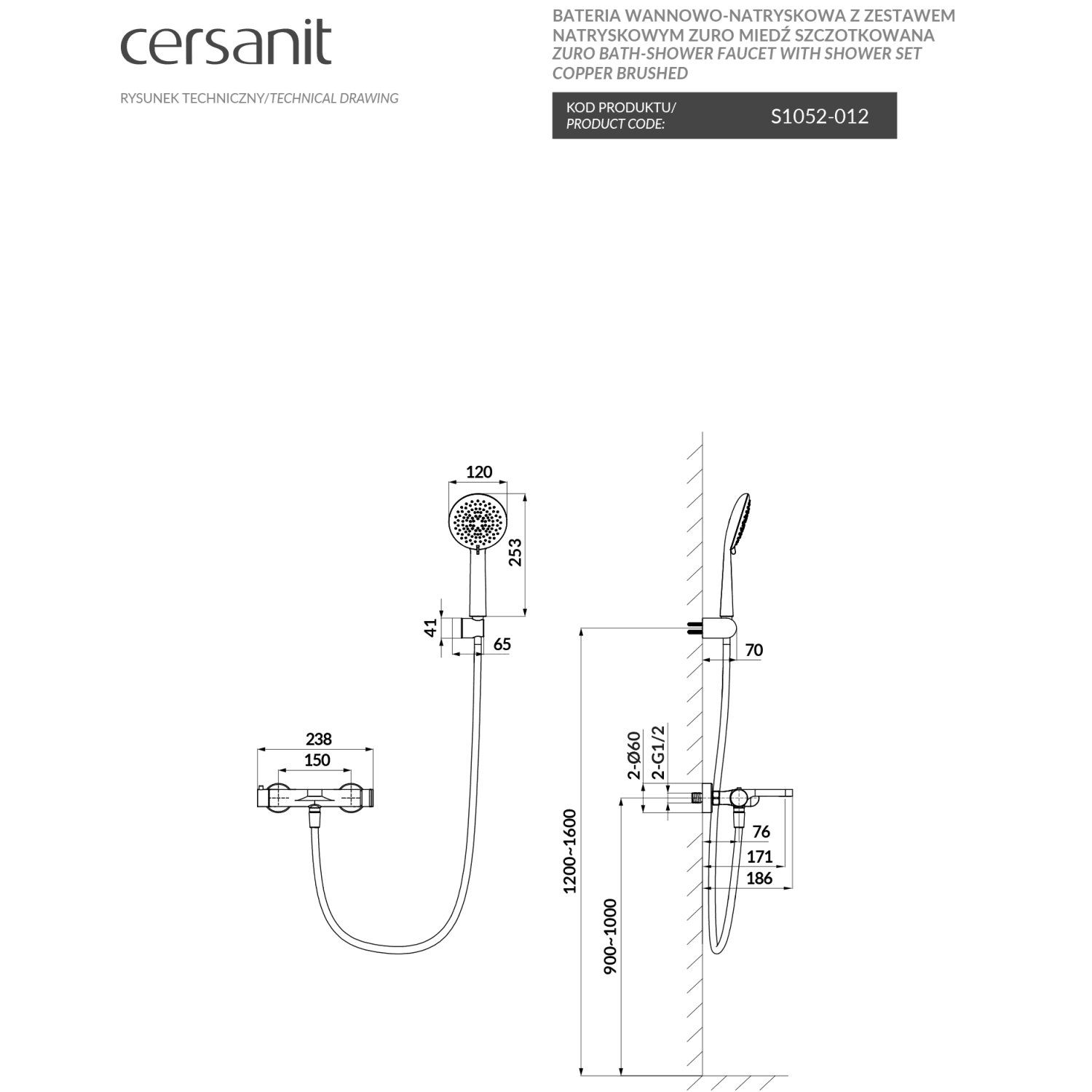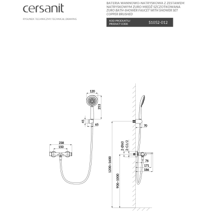 Cersanit Bateria wannowa Zuro miedź szczotkowana
