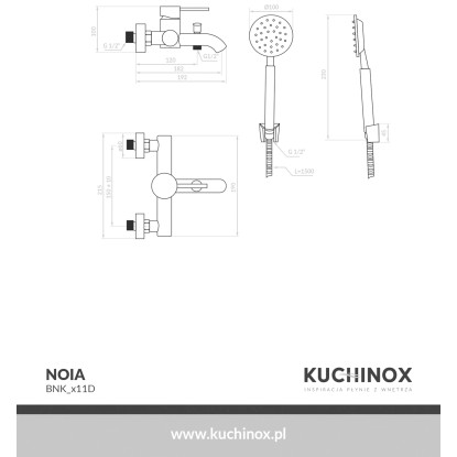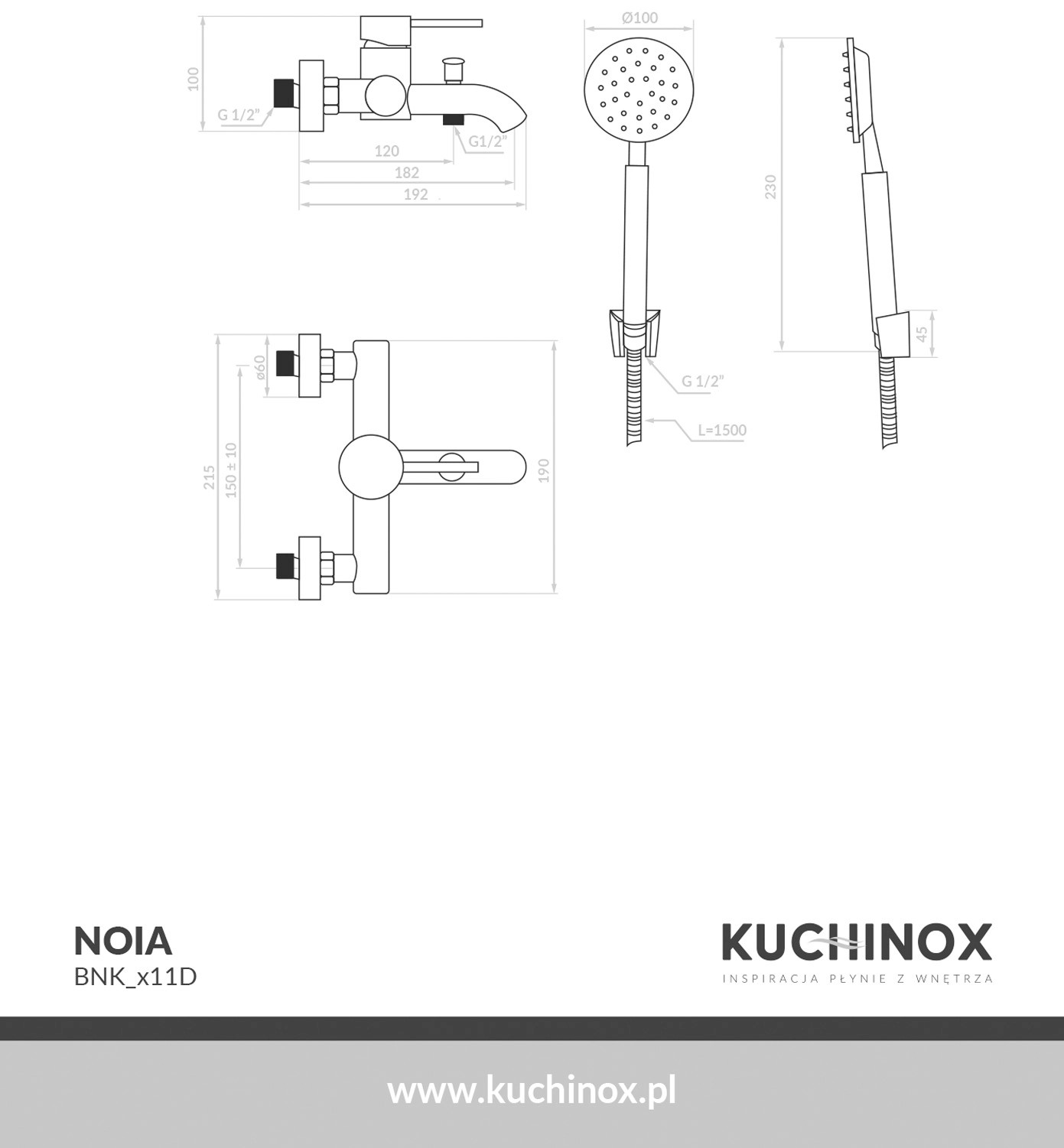Kuchinox Bateria wannowa stojąca z zestawu natryskowego Noia