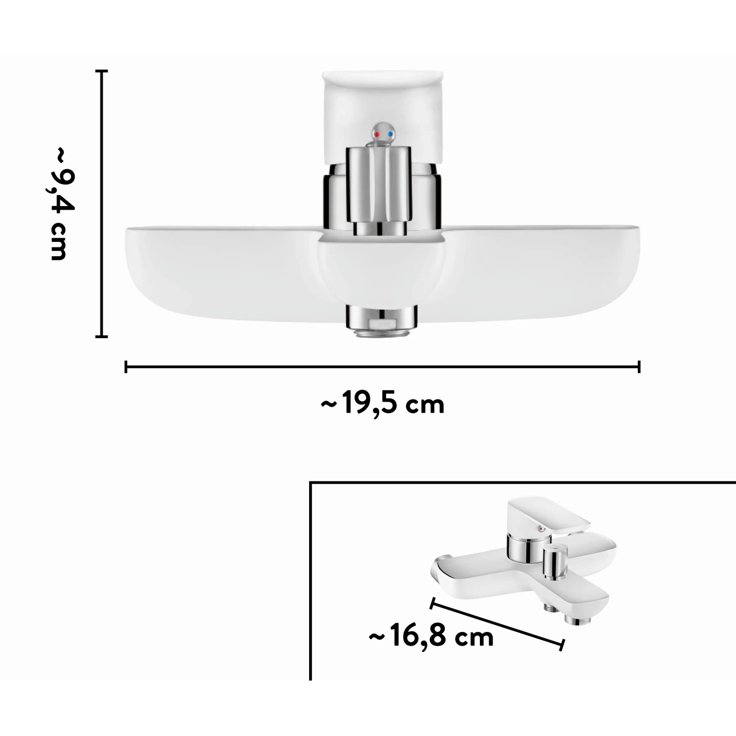 Bateria wannowa Eva White marki Liveno to elegancka i funkcjonalna bateria łazienkowa dedykowana do montażu ściennego, idealnie pasująca do każdej wanny. Połączenie białego i chromowanego wykończenia nadaje jej nowoczesny, stylowy wygląd, który doskonale komponuje się z jasnymi i minimalistycznymi aranżacjami wnętrz.