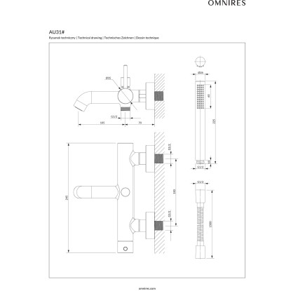 Omnires Bateria wannowo-prysznicowa Auron złoto szczotkowane