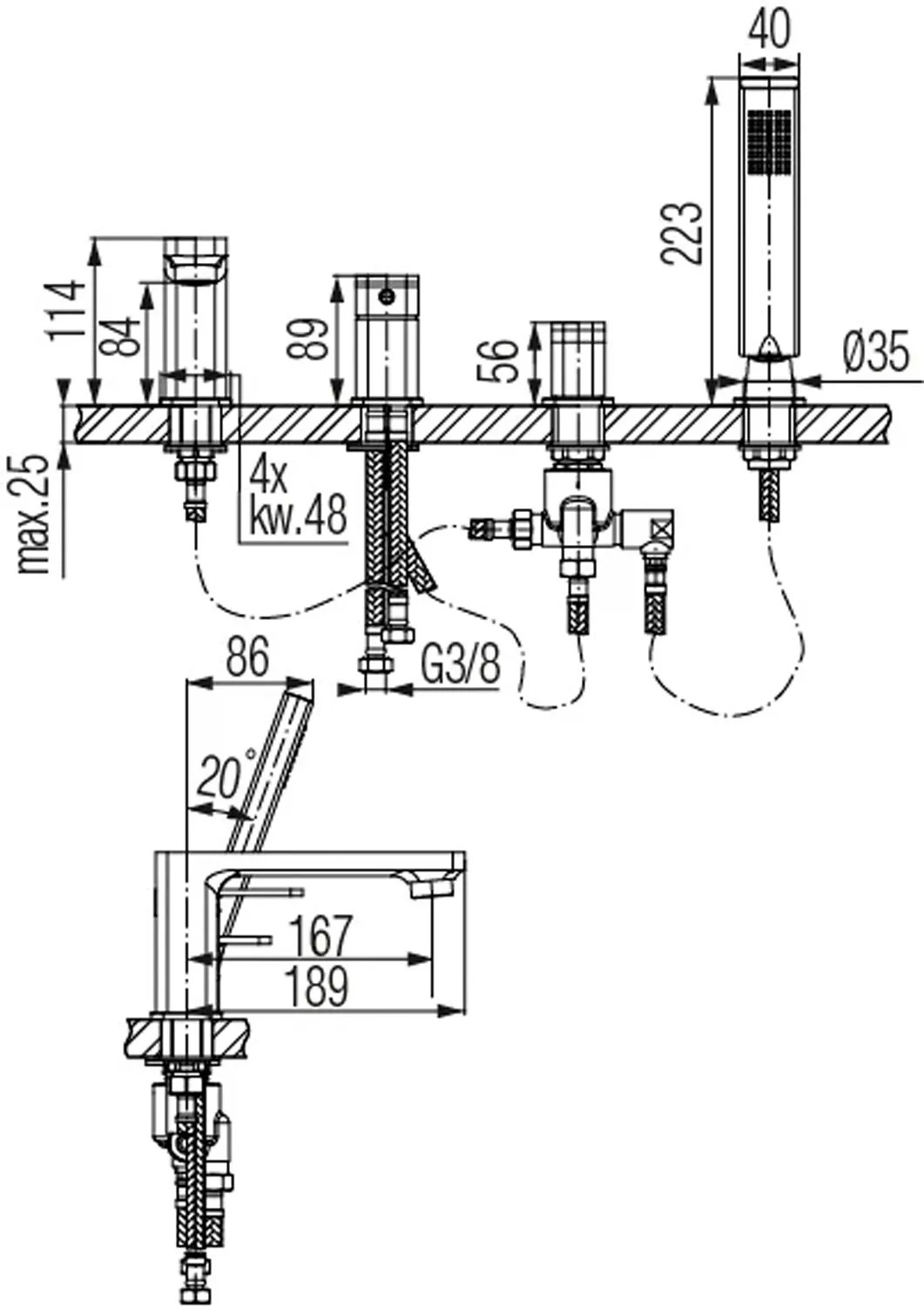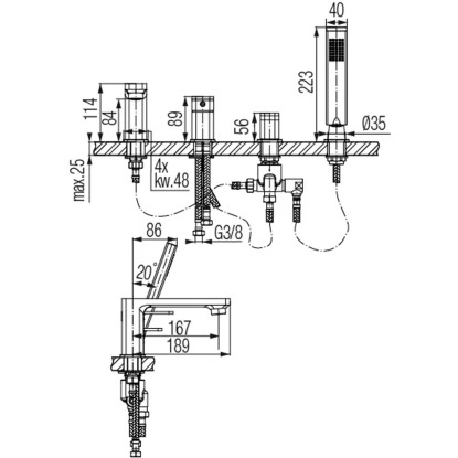 Valvex Bateria wannowa 4-otwor Loft chrom, biel