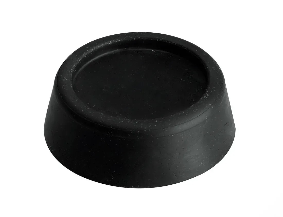 Cztery sztuki wykonanych z gumy podkładek pod pralkę o wymiarach Ø45 - 65 x 21 mm.