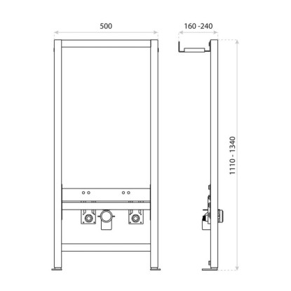 Podtynkowy stelaż o wysokości 111-134 cm, szerokości 50 cm i głębokości 16-24 cm przeznaczony do zawieszenia bidetu w konstrukcji płyt gipsowych.