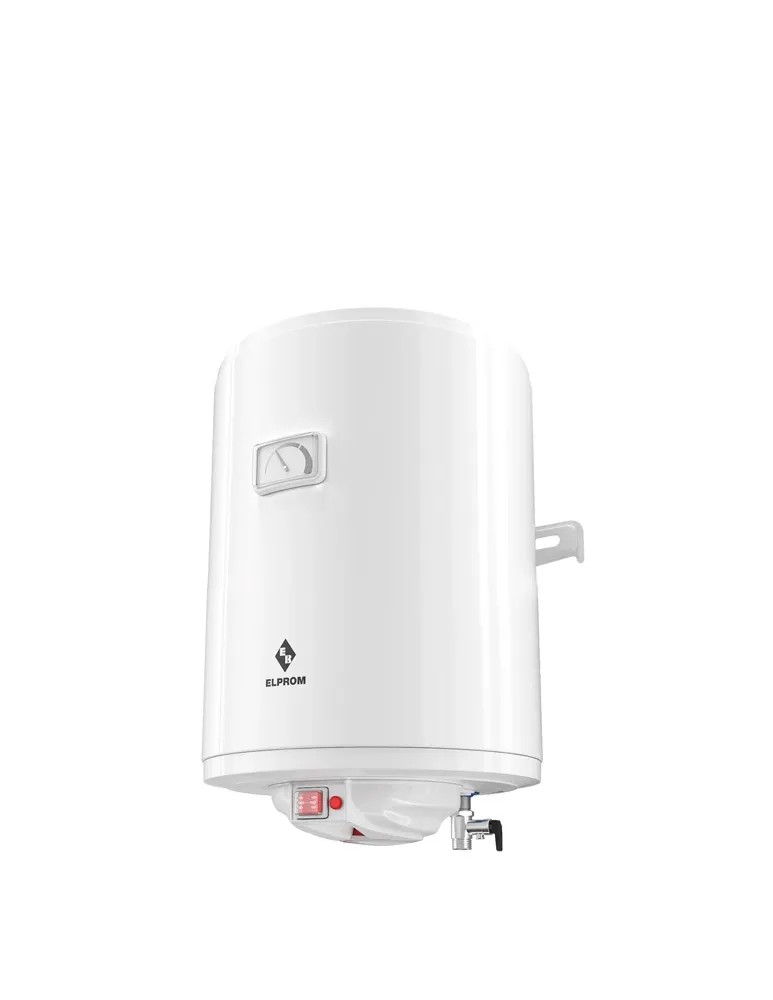 Elektryczny, pojemnościowy bojler do wody o pojemności 30 l i mocy 1200 W marki ELPROM. Zbiornik podgrzewacza powlekany jest emalią glass-ceramic i posiada izolację pianką poliuretanową wysokiej gęstości, która doskonale utrzymuje ciepło wody. Bojler wyposażony jest w grzałkę o mocy 1200 W, która szybko dogrzewa wodę do określonej przez użytkownika temperatury. Do zestawu został dołączony zawór bezpieczeństwa, który automatycznie odcina dopływ prądu w momencie przekroczenia maksymalnej temperatury wody.