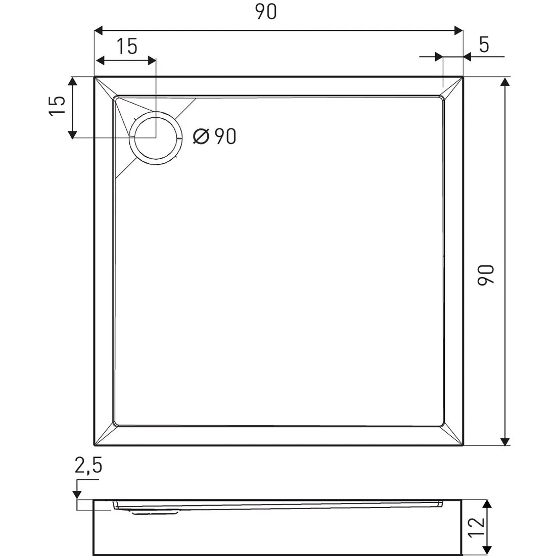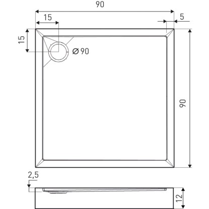 Kerra Brodzik kwadratowy David 90 x 90 x 12 cm czarny
