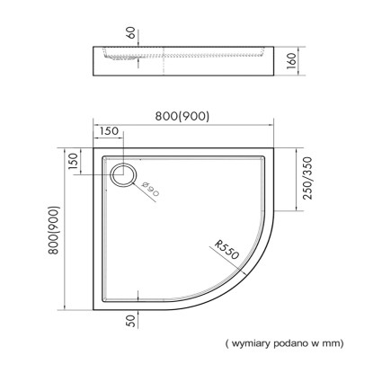 Schedpol Brodzik półokrągły Mittel 90 biały 90x90x16