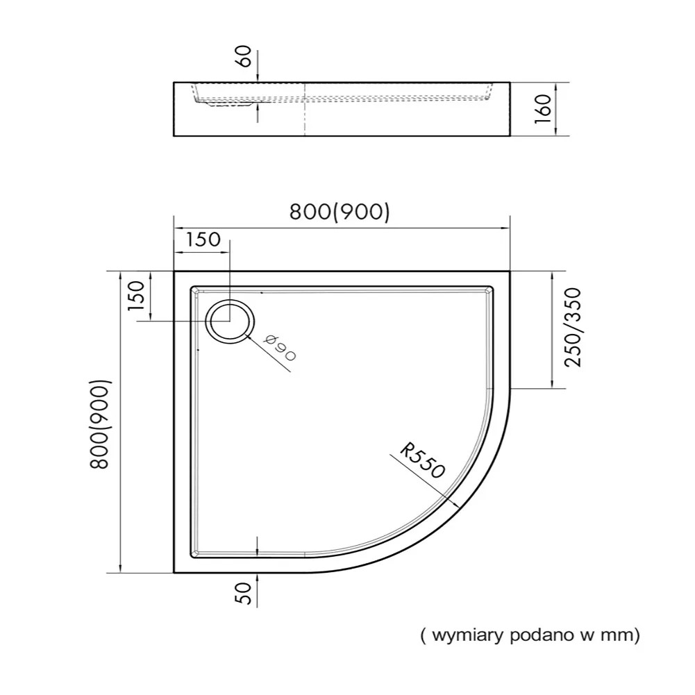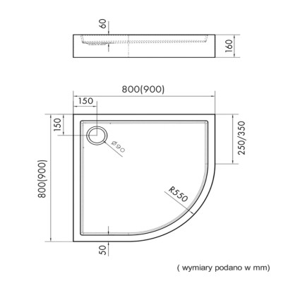 Schedpol Brodzik półokrągły Mittel 90 czarny struktura 90x90x16