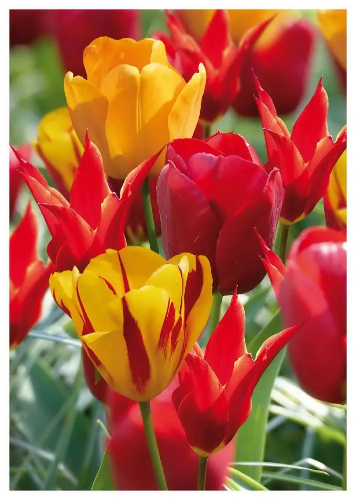 Tulipan Various Fireside to kolekcja różnych odmian i gatunków tulipanów o intensywnych, ognistych kolorach. Znajdą się w niej tulipany Triumph, liliokształtne i Darwina w trzech podstawowych kolorach i różnych odcieniach. Połączone ze sobą tulipany czerwone, pomarańczowe, żółte, żółto-czerwone różnych kształtów utworzą w ogrodzie wspaniały klomb lub rabatę. Można je również posadzić do późniejszego ścięcia na przepiękne bukiety.