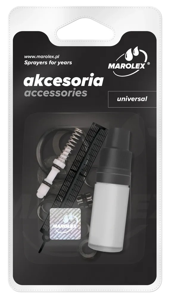 Uniwersalny zestaw naprawczy przeznaczony do naprawy i konserwacji ciśnieniowych opryskiwaczy produkowanych przez firmę Marolex.