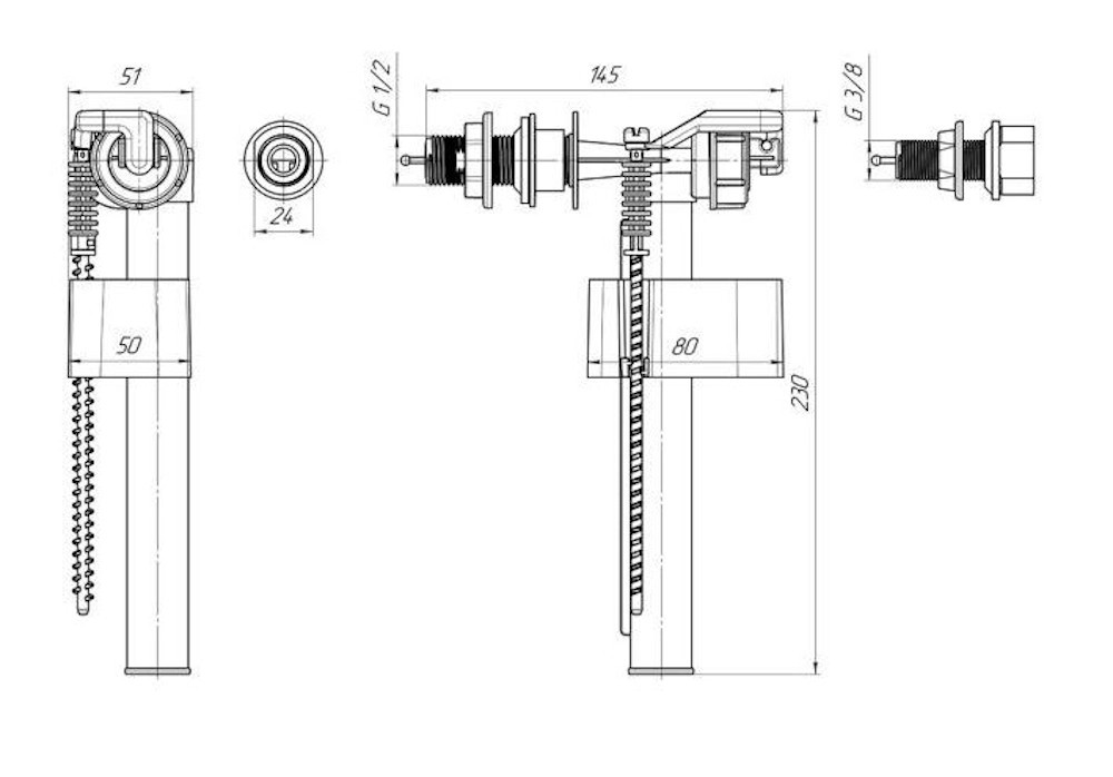 Tycner Zawór WC napełniający uniwersalny 1/2 i 3/8