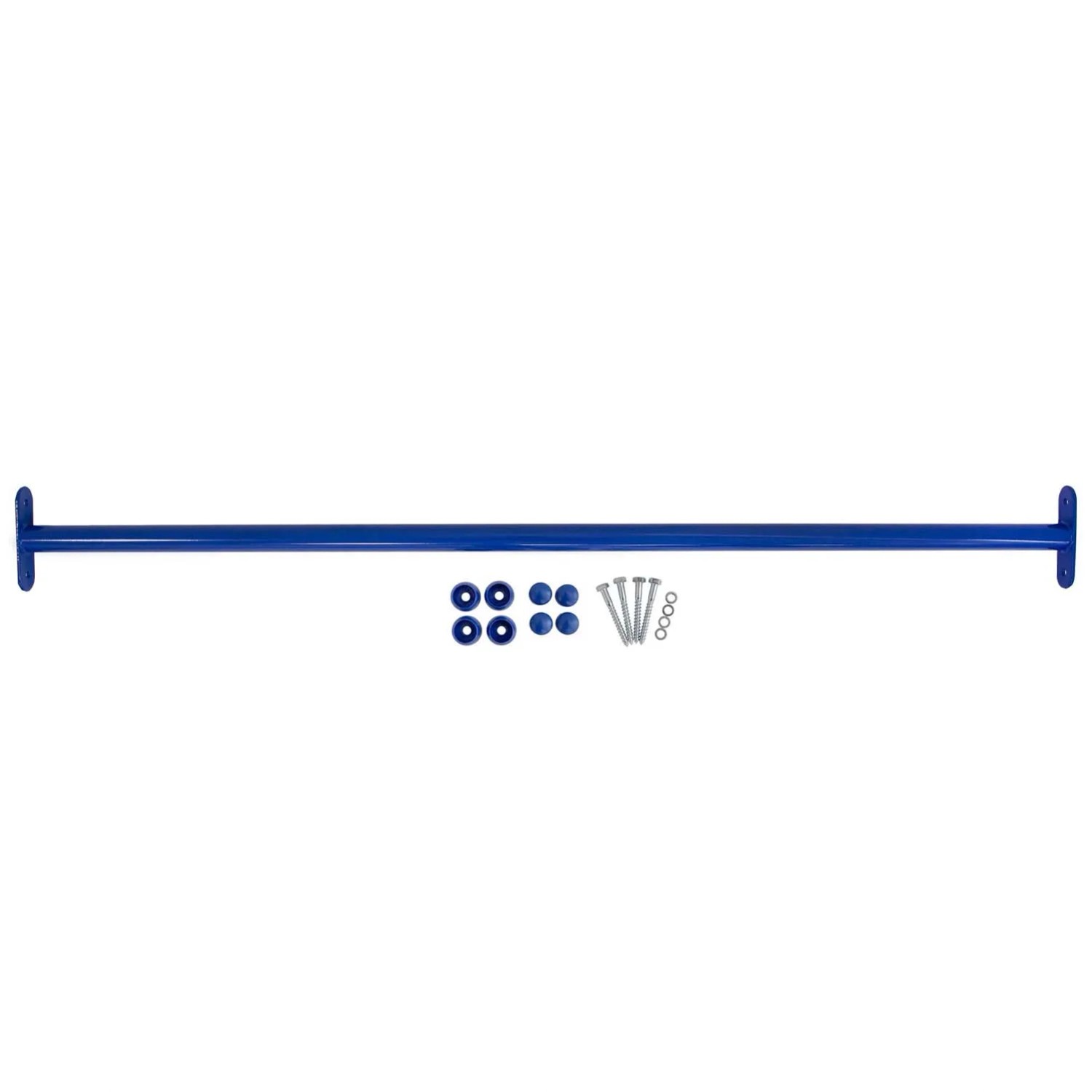 Metalowy drążek w kolorze niebieskim na plac zabaw - zabawa i rozwój w jednym. Wytrzymały drążek o szerokości 125 cm i maksymalnym udźwigu 100 kg to doskonałe uzupełnienie każdego placu zabaw. Malowany proszkowo, odporny na warunki atmosferyczne i łatwy w montażu, zapewnia dzieciom wiele możliwości aktywnej zabawy - od podciągania, przez akrobacje, aż po wspinaczkę. Dzięki niemu najmłodsi rozwijają sprawność ruchową, koordynację i wzmacniają mięśnie, jednocześnie świetnie się bawiąc. Solidna konstrukcja i ergonomiczny design sprawiają, że drążek jest bezpieczny, trwały i idealny dla dzieci w różnym wieku.