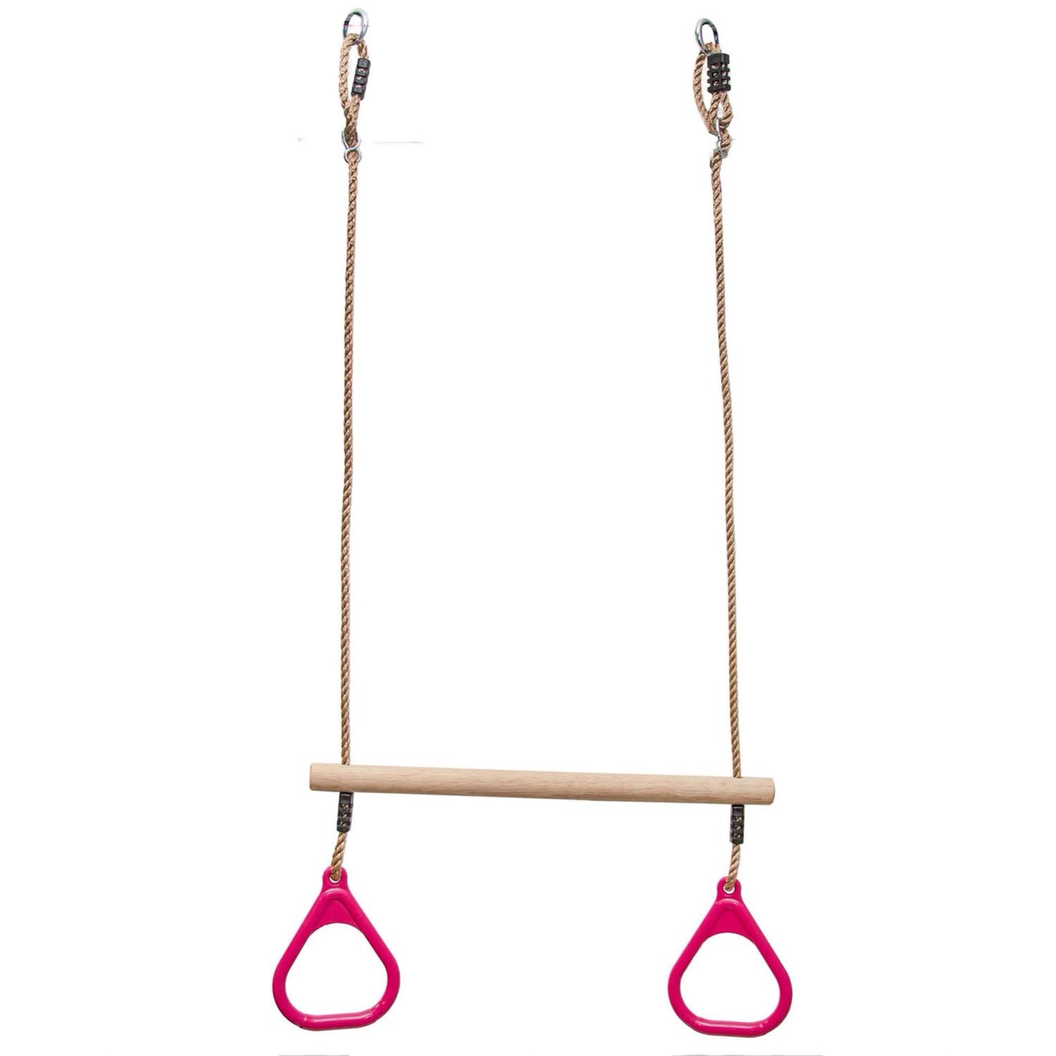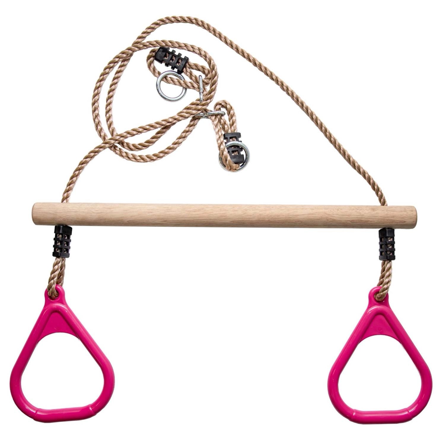 Drewniany trapez na plac zabaw to doskonałe rozwiązanie dla dzieci od 3 lat, łączące zabawę z rozwijaniem siły, koordynacji i równowagi. Wykonany z trwałego drewna z plastikowymi uchwytami i stalowymi, ocynkowanymi zawiesiami, zapewnia bezpieczeństwo i stabilność podczas zabawy. Produkt spełnia normy bezpieczeństwa EN71, a jego solidna konstrukcja gwarantuje długotrwałe użytkowanie i radość z zabawy. Trapez o szerokości 58 cm i średnicy 3,5 cm umożliwia różnorodne aktywności - od tradycyjnego huśtania, przez ćwiczenia gimnastyczne, aż po akrobacje, zarówno w domu, jak i w ogrodzie. Maksymalne obciążenie wynosi 70 kg, a montaż pozwala dostosować wysokość od 88 do 132 cm. Różowy kolor idealnie wpasowuje się w otoczenie.