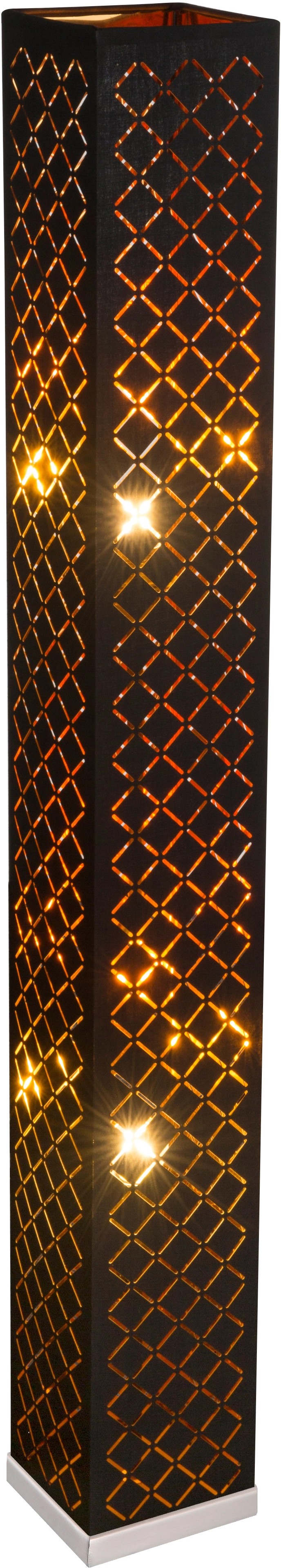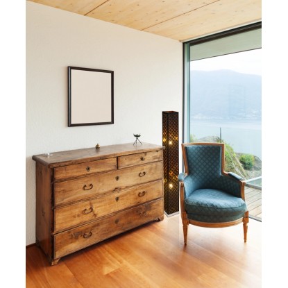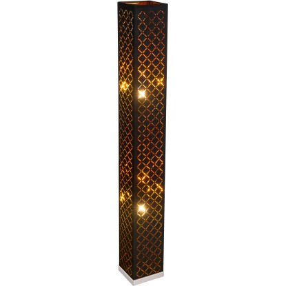 Jest to lampa stojąca z włącznikiem, nadająca pomieszczeniu szczególnego charakteru. Stanowi idealne dopełnienie dla nowoczesnych aranżacji, wnosząc do wnętrza wyjątkowy, przyjemny nastrój. Metalowy stelaż oraz tekstylny abażur w kolorze czarno-złotym na pewno podniosą walory estetyczne wystroju: sypialni, salonu czy innego pomieszczenia.