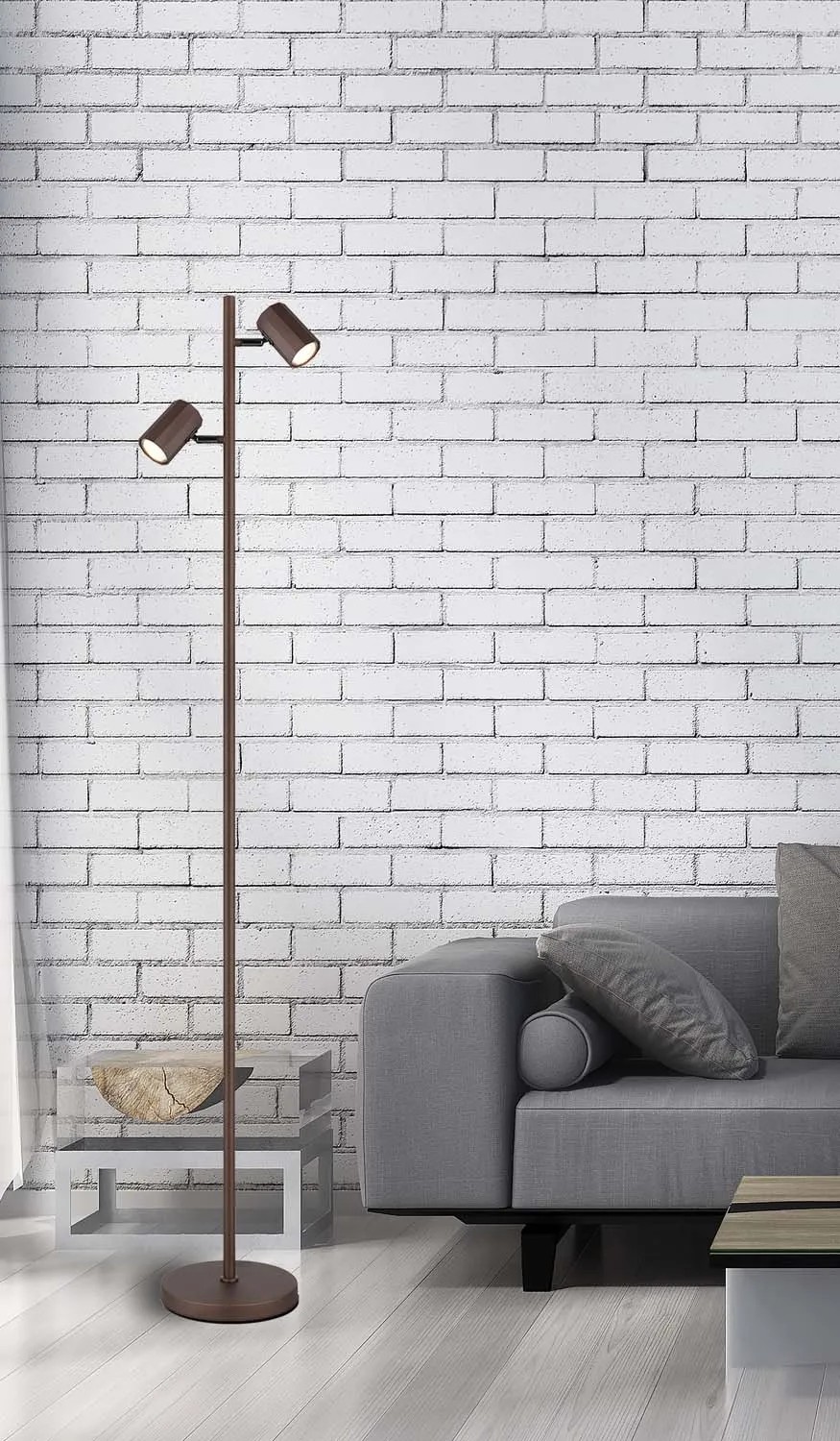 Globo Lampa podłogowa JAMES 2xGU10 5W brąz mat
