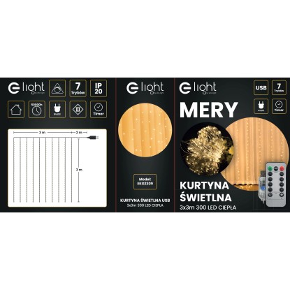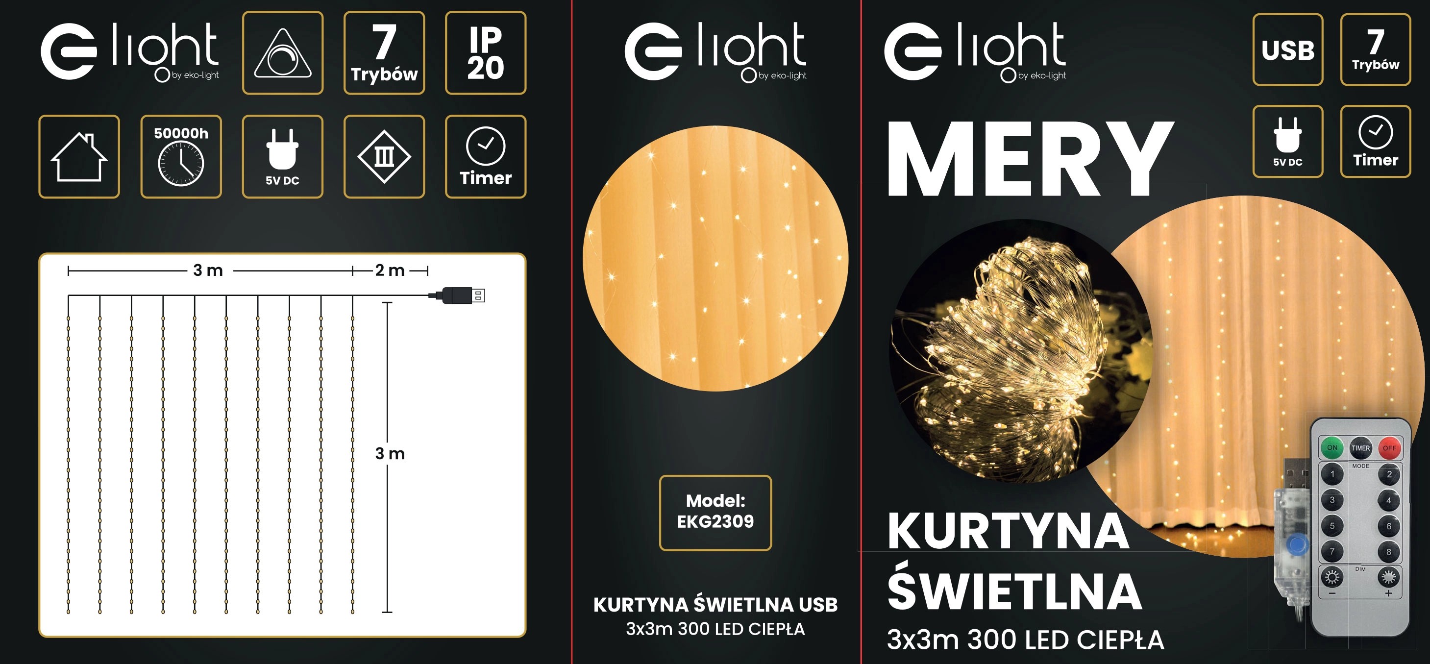Eko-Light Kurtyna okienna MERY 300LED USB 5V 1W 2200lm