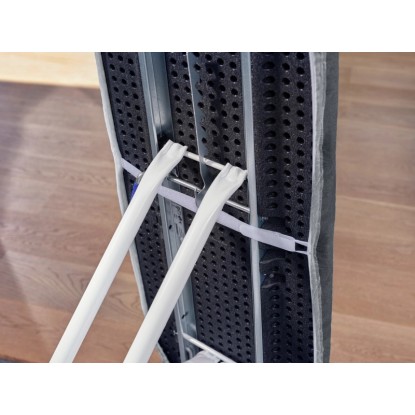 Pokrowiec Thermo Reflect idealnie pasuje do desek z serii Air Board marki Leifheit o wymiarach blatu do 125 x 40 cm. Zakładanie tego modelu jest bardzo łatwe, a o odpowiednie naprężenie dba elastyczny pasek zakończony na jednym końcu niezawodnym klipsem. Dodatkowo, pokrowiec posiada po bokach mocowania na rzepy Easy Fit, dzięki czemu jeszcze lepiej przylega do blatu deski.