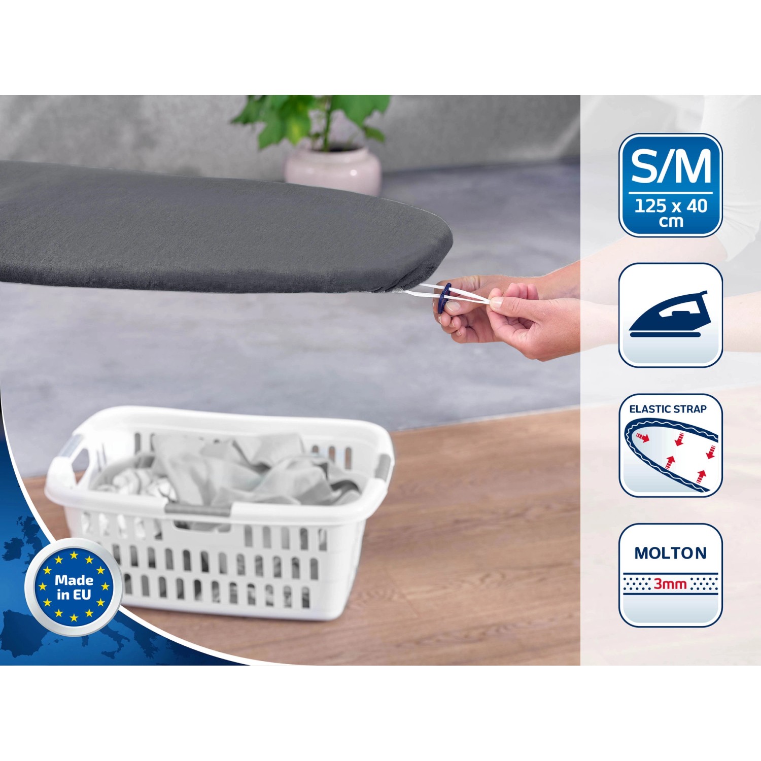 Pokrowiec na deskę Thermo Reflect S/M marki Leifheit umożliwi wyprasowanie każdego prania w komfortowy sposób i o wiele szybciej niż zwykle. Model ten wykonano ze specjalnego, bardzo wytrzymałego materiału, który pokryto tytanową powłoką. Dzięki temu, pokrowiec odbija parę i ciepło żelazka, więc ubrania prasowane są jednocześnie z obu stron. To znacznie przyspiesza i ułatwia cały proces, a tkaniny są gładsze. Podkład z moltonu o grubości 3 mm sprawia, że żelazko lepiej prowadzi się po ubraniu.