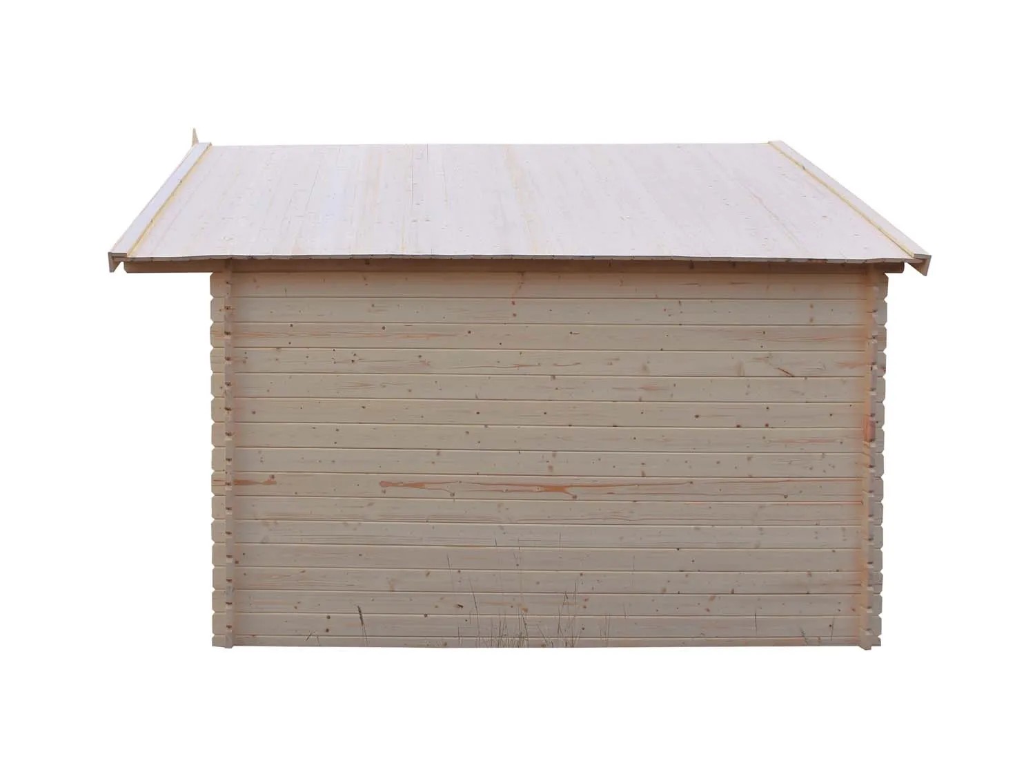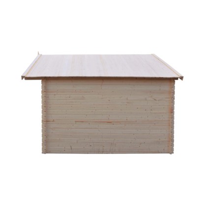 Domek posiada dwuspadowy dach, który zapewnia odpowiednią ochronę przed deszczem i wiatrem, a jego kształt sprzyja efektywnemu odprowadzaniu wody deszczowej. Pokrycie papą asfaltową gwarantuje trwałość dachu oraz odporność na działanie warunków atmosferycznych, a także sprawia, że domek jest jeszcze bardziej odporny na wilgoć i zmiany temperatury.