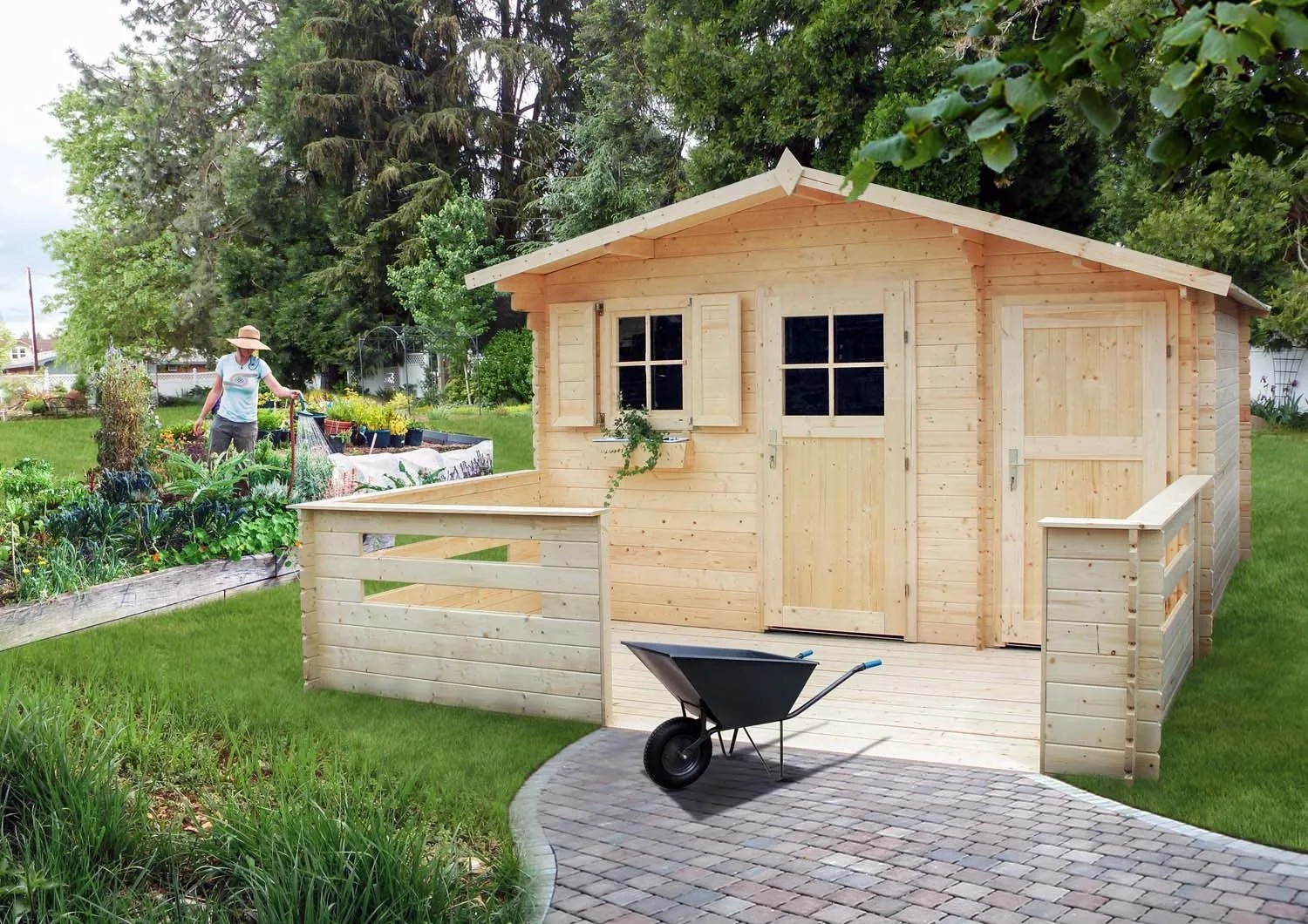 Domek ogrodowy Platan z tarasem i podłogą - 416 x 566 cm, wys. 262 cm
