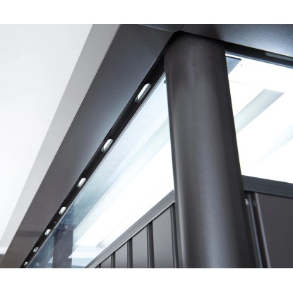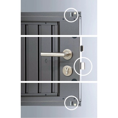- bezpieczeństwo: potrójna blokada z zestawem klamek ze stali nierdzewnej. Wytrzymałość podczas burzy (150km/h, siła wiatru 12). Wysokie obiążenie śniegiem do 150kg/m2.