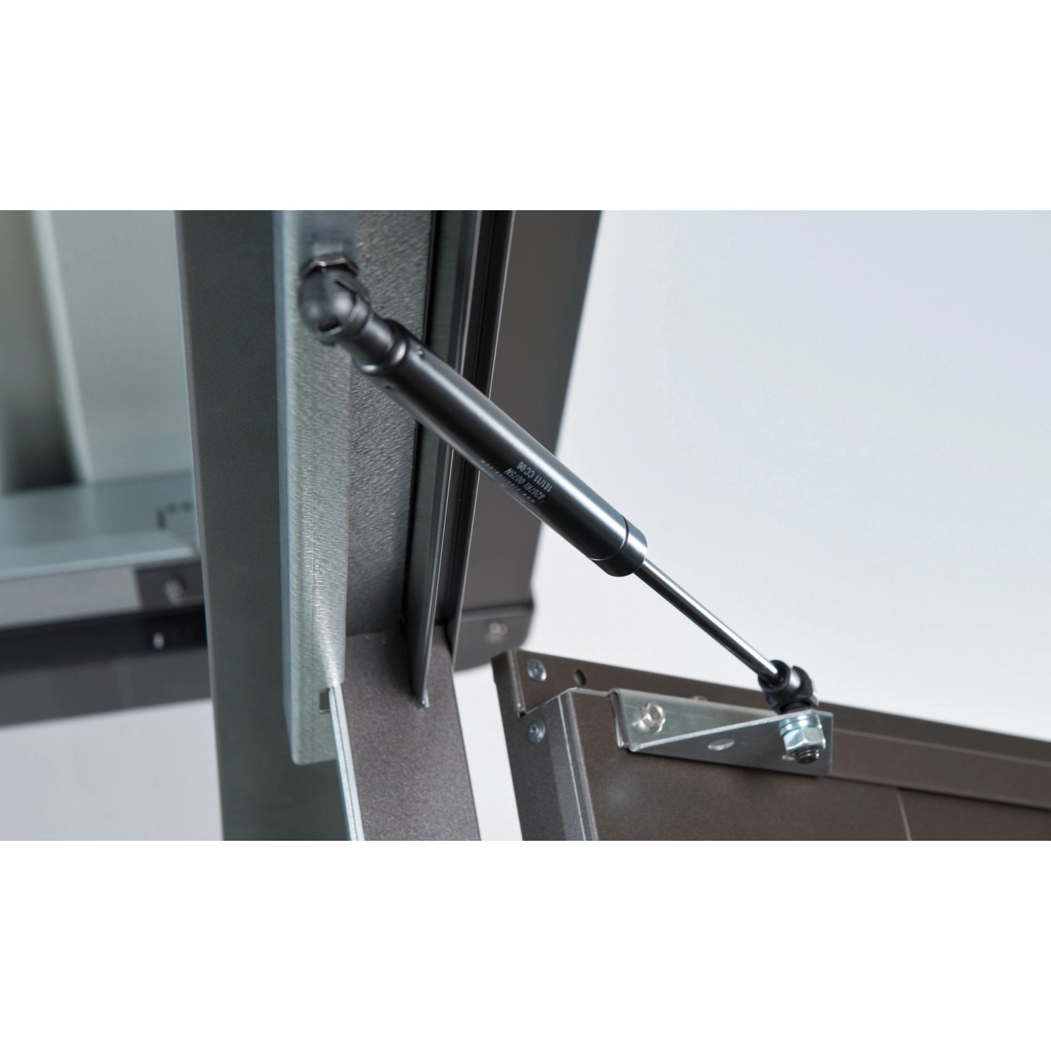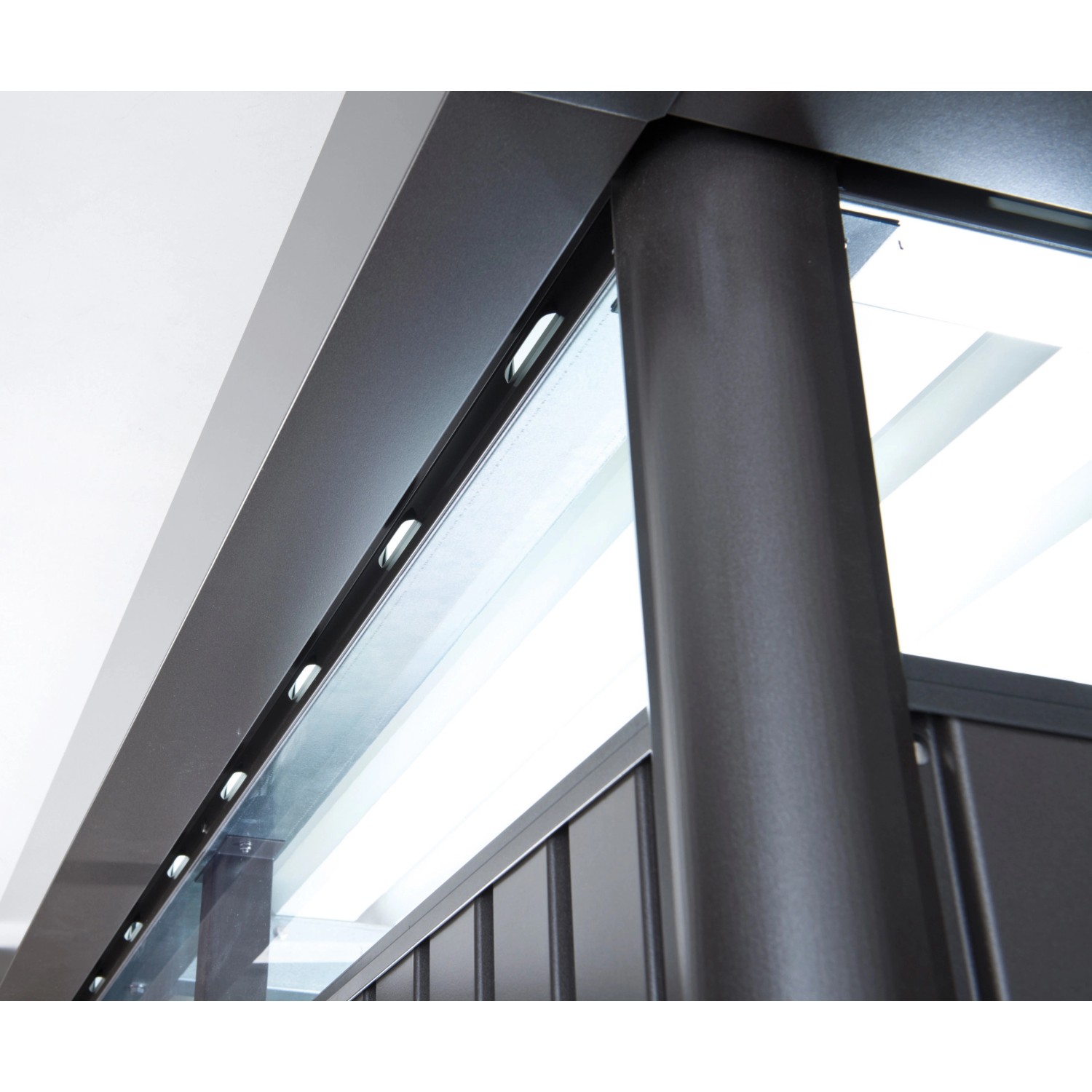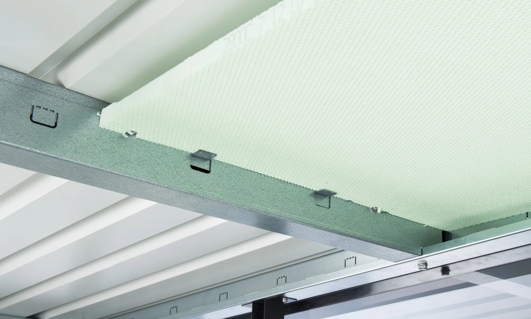 - funkcjonalność: zintegrowana rynna dachowa (wraz z przyłączem do węża 5/4 cal). Rynna dachowa ze zintegrowanym wyłapywaczem liści po obu stronach. Otwieranie drzwi wspomagane samozamykaczem.