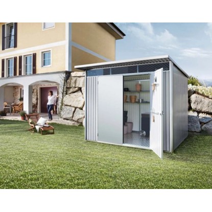 Biohort Domek ogrodowy srebrny drzwi podwójne - 180 x 380 cm