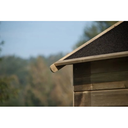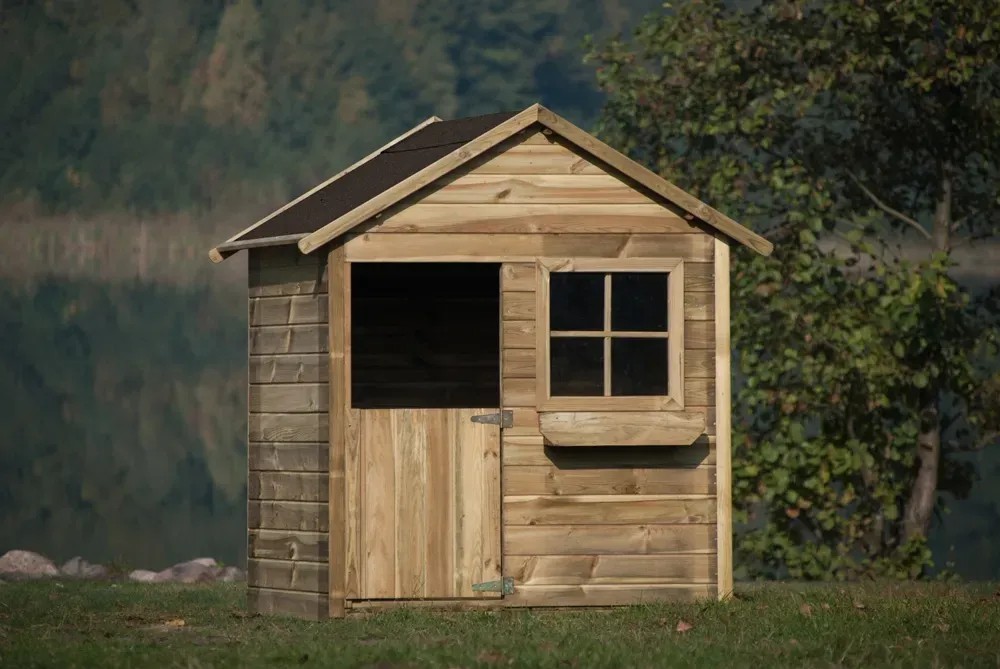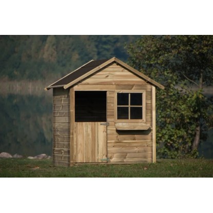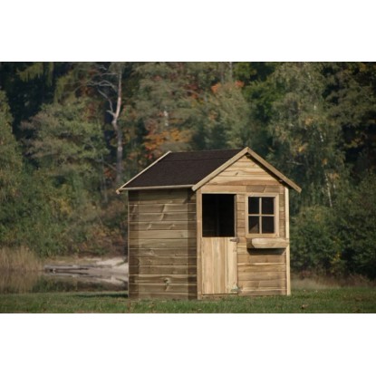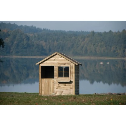 Mati to uroczy drewniany domek dla dzieci. Komfortowy w użytkowaniu z podłogą ustawioną bezpośrednio na podłożu, bez progów i schodków, zachęca najmłodszych do zabawy i wypoczynku. Wyposażony w okno wypełnione bezpieczną przeźroczystą płytą plexi oraz donicę na kwiaty pozwala na zabawę w dom i wspaniały relaks na świeżym powietrzu.