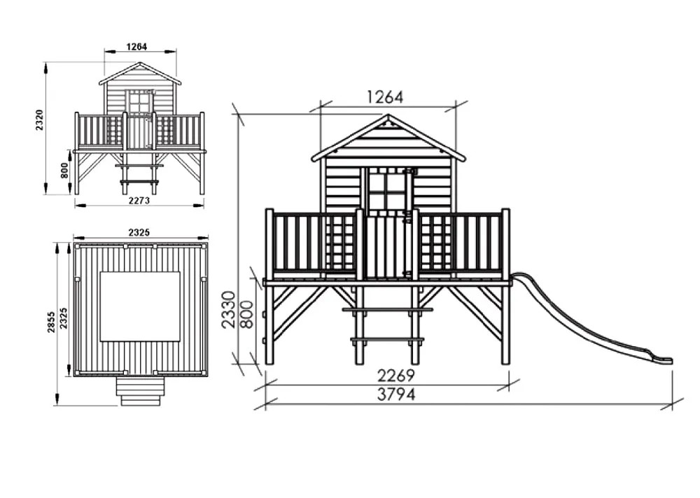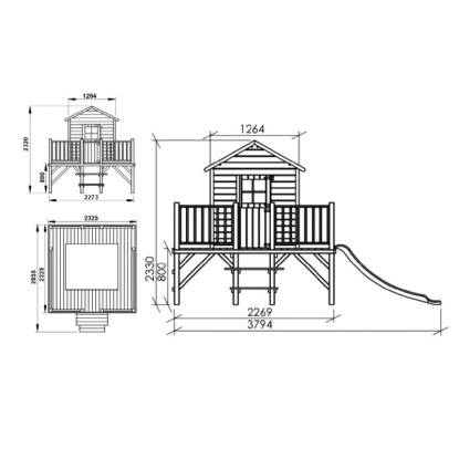 4IQ Domek Milo ze ślizgiem - 379 x 286 cm, wys. 232 cm