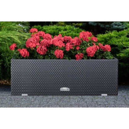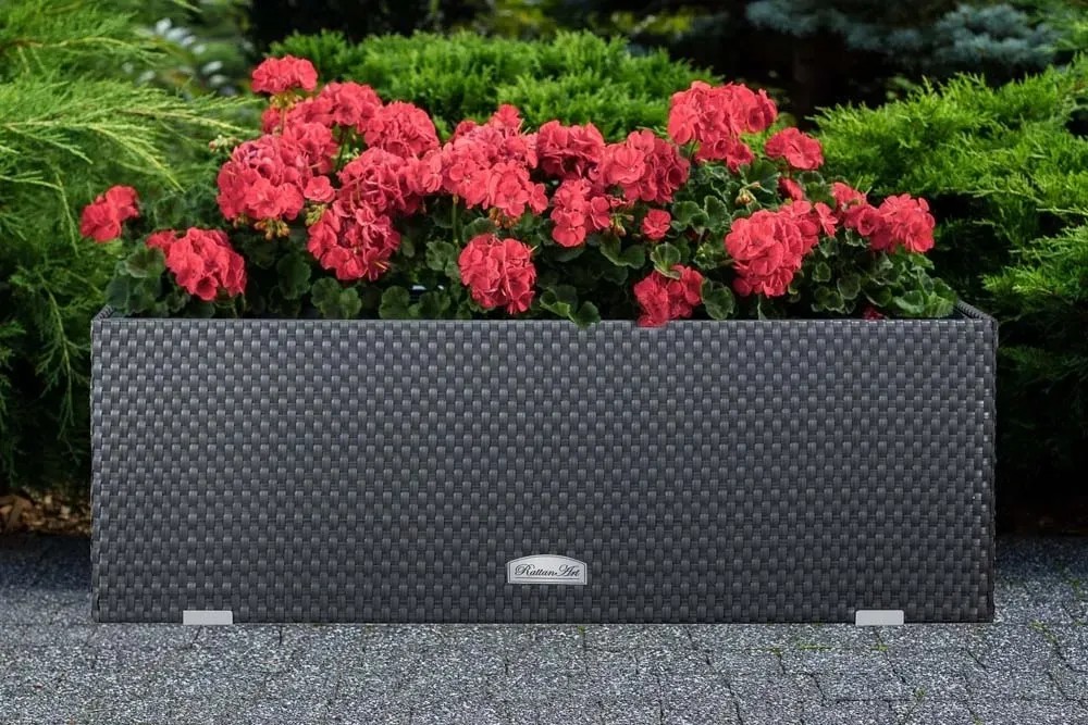 Donica rattanowa z nawodnieniem ciemnobrązowa - 95 x 30 x 43 cm
