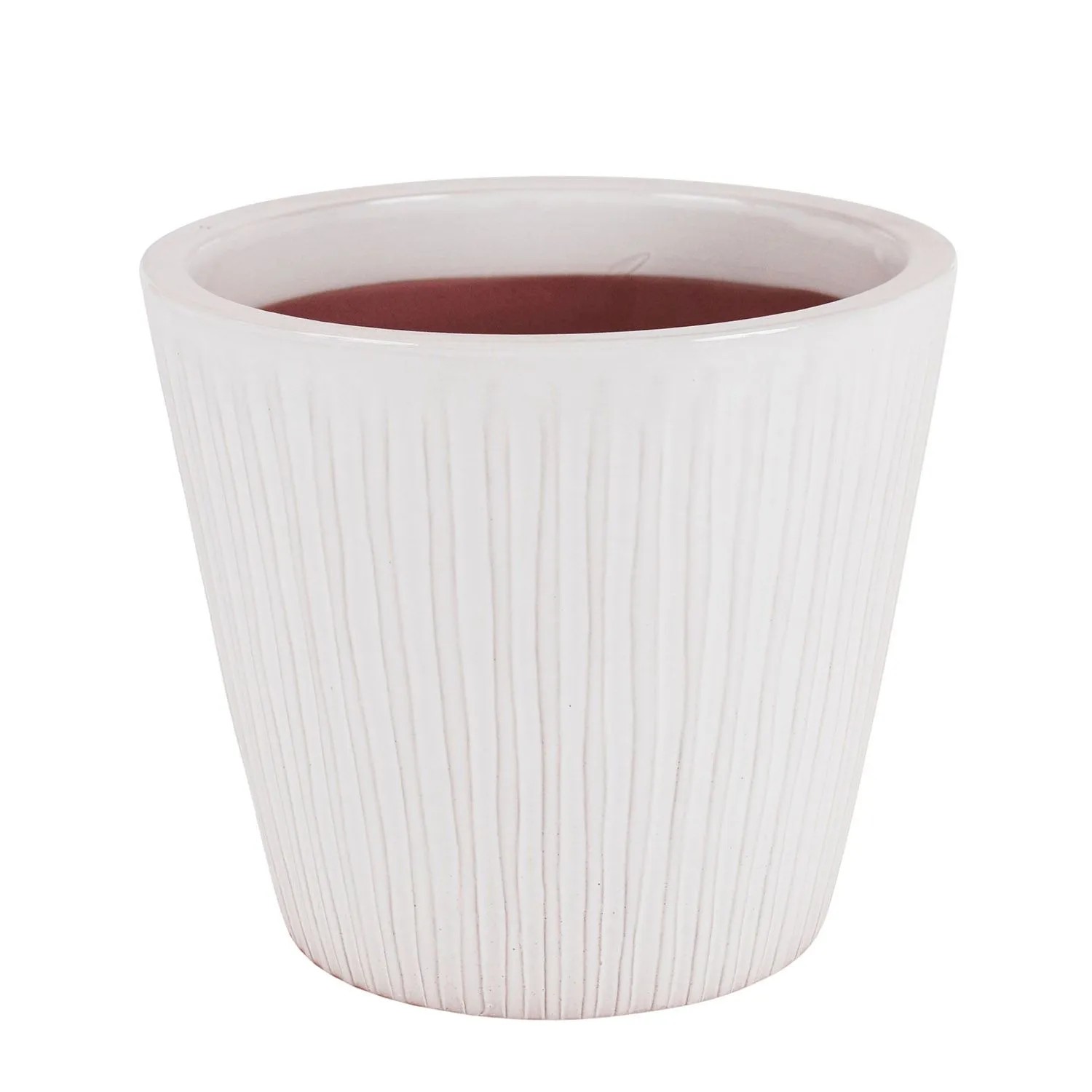 Mrozoodporna donica ceramiczna o średnicy 33 cm w kolorze białym. Przeznaczona do aranzacji tarasów, balkonów i ogrodów.