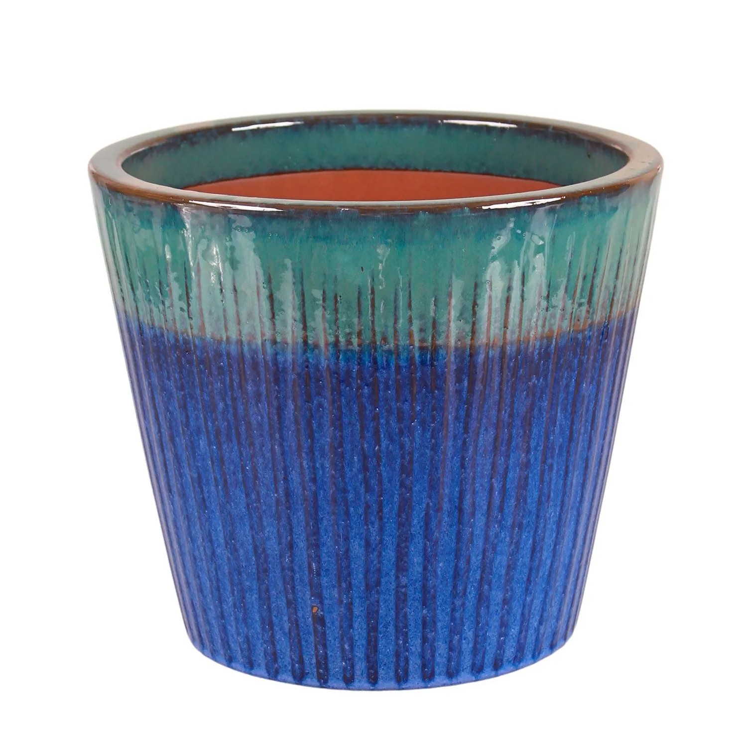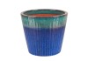 Mrozoodporna donica ceramiczna o średnicy 33 cm w kolorze błękitno-niebieskim. Przeznaczona do aranzacji tarasów, balkonów i ogrodów.